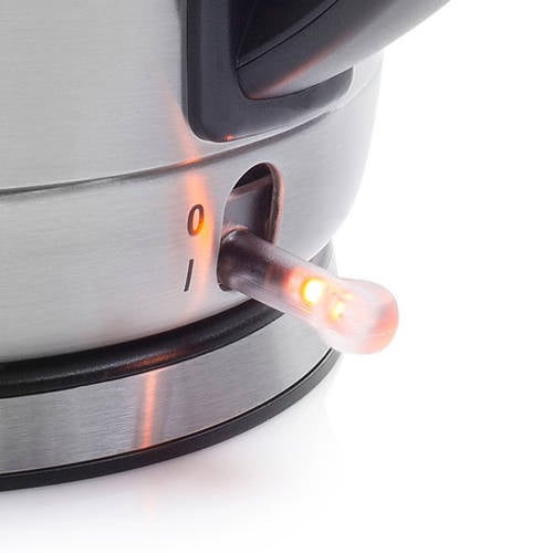 Deze Tefal KI270D waterkoker Subito Select heeft een rvs behuizing en een stijlvolle uitstraling. De waterkoker heeft een ruime inhoud van 1.7 liter, een aan/uit-schakelaar met controlelampje en een handige deksel die je eenvoudig met één druk op de knop kunt openen. Dankzij het hoge vermogen van 2400 Watt is jouw kopje koffie of thee in een oogwenk gezet. De 360° draaibare voet zorgt ervoor dat deze Subito Select waterkoker stevig op zijn plaats blijft staan. Specificaties- Vermogen: 2400 Watt- Inhoud: 1.7 liter- Aan/uit-schakelaar met controlelampje- Automatische afslag- Afneembaar, wasbaar kalkaanslagfilter- Droogkookbeveiliging- Gesloten verwarmingselement- 360 graden draaibaar- Snoerloos- Kleur: rvs/zwart - Garantietermijn: 2 jaarAfmetingen en gewicht- Afmetingen (hxbxd) 22.4x17.1x23.3 cm- Gewicht: 1.035 kg