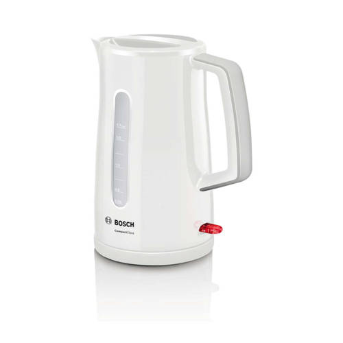 De Bosch TWK3A011waterkoker is er één uit de CompactClass serie. De waterkoker is eenvoudig en snel in gebruik. De roesvrijstalen bodemt dekt het verwarmingselement netjes af en is daardoor eenvoudig te reinigen. De TWK3A011 waterkoker beschikt over een verwijderbaar kalkfilter en de schenkkan is 360 graden draaibaar.Specificaties- Vermogen: 2400 watt - Inhoud: 1.7 liter - Automatische afslag - Kalkfilter - Droogkookbeveiliging - Gesloten verwarmingselement - 360 graden draaibaar - Snoerloos - Snoeropberging - Kleur: wit - Garantietermijn: 2 jaarAfmetingen en gewicht- Afmeting (hxbxd): 26.5x23x15.2 cm - Gewicht: 1.1 kg