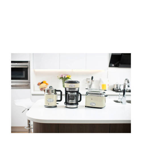 Deze Russell Hobbs Retro Vintage Creme waterkoker heeft een inhoud van 1,7 liter en een vermogen van 2400 Watt. De chique Russell Hobbs Retro Vintage Creme waterkoker, in retrolook, is uitgerust met de modernste technische snufjes en heeft ook een smaakvolle uitstraling. De waterkoker heeft een snelkookfunctie waarmee je in slechts 55 seconden een kop kokend water hebt. Dit is ideaal als je snel warm water nodig hebt of als je maar één kop thee wilt zetten. De perfecte schenktuit van de waterkoker voorkomt spetteren en knoeien en zorgt ervoor dat al het water in de kop komt en niet op je werkoppervlak. Verder heeft de waterkoker een snelkookzone voor 1/2/3 koppen zodat je zelf kunt beslissen hoeveel water je gebruikt. Specificaties:- Inhoud: 1.7 liter- Vermogen: 2400 Watt- Roestvrijstalen met retroaccenten- Watertemperatuurvenster- Snelkookzone voor 1/2/3/ koppen- Kookt 1 kop in 55 seconden- Bespaar tot 66% energie- Perfecte schenktuit- Gemakkelijk afneembaar deksel- Waterniveauvenster- Automatische afslag- Droogkookbeveiliging- Gesloten verwarmingselement- Verlichte aan/uit-knop- 360° draaivoet- Uitneembaar, wasbaar filter- 'Soft grip'-handgreep- Kleur: creme- Garantietermijn: 2 jaar