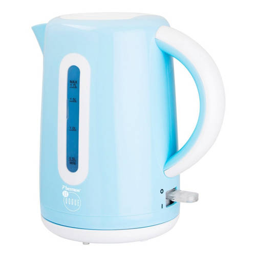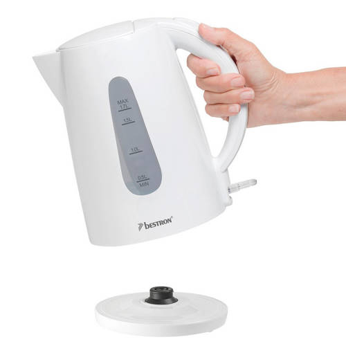 Deze Bestron AWK1000M waterkoker heeft een vermogen van 2200 Watt en een inhoud van 1,7 liter. Met de AWK1000M kook je snel water voor bij voorbeeld thee of soep. Deze snoerloze waterkoker is voorzien van een waterniveauaanduiding, een scharnierend deksel met veiligheidssluiting, automatische kookstop, droogkookbeveiliging en een praktisch snoeropwikkelsysteem. Het geïntegreerde rvs warmte-element is ongevoelig voor kalkaanslag.