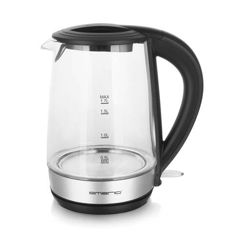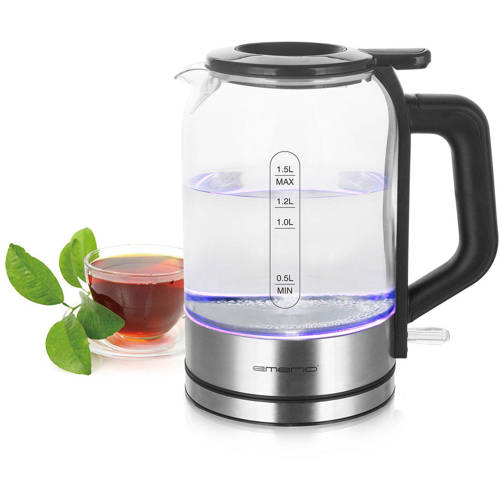 Deze Emerio WK-122574 waterkoker heeft een vermogen van 2200 Watt en een inhoud van 1,5 liter. De waterkoker is uitgerust met een smartvul deksel en de glazen behuizing van de WK-122574 is bestand tegen hoge temperaturen zoals bij koken. Als je de waterkoker aanzet wordt de LED verlichting geactiveerd. Verder is de waterkoker voorzien van een waterniveau-indicator, een beveiligingssysteem tegen droog koken en automatische uitschakelfunctie als het water kookt of van de voet wordt genomen.Specificaties- Vermogen: 2200 Watt- Inhoud: 1,5 liter- Waterniveau indicatie- Automatische afslag- Smartvul deksel- Temperatuur 100 °C- Droogkookbeveiliging- -Antikalk filter- Gesloten verwarmingselement- 360 graden draaibaar- Snoeropbergmogelijkheid- Garantietermijn: 2 jaarAfmetingen en gewicht- Afmetingen (hxbxd) 25,5x20x16 cm- Gewicht: 1,34 kg