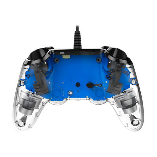 Wil je lekker kunnen gamen zonder dat je je zorgen hoeft te maken over een lege batterij? Dan is deze officieel gelicenseerde Illuminated Wired Compact Controller van Nacon voor je PlayStation 4 een prima keuze! Je sluit de bedrade controller in een mum van tijd op je PS4 aan en voor je het weet zit je helemaal midden in je game.De controller is niet alleen goedkoper dan andere officieel gelicenseerde controllers voor de PlayStation 4, maar ook nog eens compacter. Zo ligt de controller door zijn ergonomische vorm lekker in de hand tijdens het gamen en zorgen de verschillende functionaliteiten voor optimaal gameplezier. Ook voor jongere gamers is de Illuminated Wired Compact Controller van Nacon een ideale controller om het gamen onder de knie te krijgen.Compacte en aantrekkelijk geprijsde PS4 controllerDe Illuminated Wired Compact Controller van Nacon is misschien kleiner van formaat, maar z’n functionaliteiten zijn dat zeker niet! De controller heeft een touchpad, een 3,5mm stereo-headsetaansluiting en trilmotoren, waardoor je optimaal in je game zit. Het snoer van maar liefst 3 meter zorgt ervoor dat je tijdens het gamen alle vrijheid hebt die je je maar wensen kan. Deze compacte PS4 controller van Nacon ziet er bovendien supervet uit! De transparante behuizing wordt verlicht door blauwe LED-lampjes. En dat geeft deze Nacon controller een wel heel flitsend uiterlijk.Illuminated Wired Compact Controller met vertrouwde knoppenDe Illuminated Wired Compact Controller voor de PS4 van Nacon beschikt over alle knoppen die je als gamer zo gewend bent op je PlayStation 4. De analoge sticks, Share-, Options- en PS-knoppen: ze zijn allemaal aanwezig op deze stoere PlayStation 4 controller van Nacon.Kies je liever voor een PS4 controller met een draadje in plaats van een draadloos exemplaar en wil je niet te veel betalen voor jouw exemplaar? Dan is deze blauwe, officieel gelicenseerde Illuminated Wired Compact Controller van Nacon met een zeer goede prijs/kwaliteitverhouding precies wat jij zoekt.