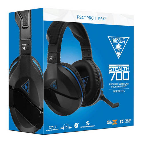 De Turtle Beach Stealth 700 is de nieuwste premium draadloze gamingheadset voor PlayStation 4, met DTS Headphone: X 7.1 surround sound en Active Noise-Cancellation, plus Bluetooth-connectiviteit met de nieuwe Turtle Beach Audio Hub-app. De Stealth 700 heeft een gloednieuwe moderne stijl en biedt meeslepend virtual surround sound plus chatgeluid via krachtige 50 mm-speakers over het oor, en is voorzien van Turtle Beach’s beroemde sterk gevoelige microfoon die je omhoog kunt klappen om te dempen. Voor het comfort is de Stealth 700 voorzien van de nieuwste versie van Turtle Beach’s unieke, brilvriendelijke ProSpecs-ontwerp, en heeft een met synthetisch leer omwikkelde hoofdband en oorkussens. De Stealth 700 bevat ook Turtle Beach’s exclusieve Superhuman Hearing-geluidsinstelling, variabele microfoonmonitoring, surround sound-modi en audiopresets waaronder basboost, plus Dynamic Chat Boost en een oplaadbare batterij met een gebruiksduur van 10 uur.