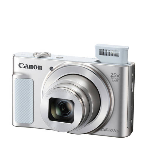 De Canon PowerShot SX620 HS is een degelijke en compacte camera die je heel eenvoudig overal mee naar toe neemt. Je maakt de mooiste foto's met deze camera van handformaat. Heb je genoeg foto's gemaakt stop je de camera gewoon weer terug in je tas. Zo maak je zelfs van de meest onverwachte momenten de beste foto's. Of je maakt een Full HD-video, dit kan met een druk op de knop van deze compact camera.Foto's van dichtbijWanneer je bijvoorbeeld in het bos bent en iets moois ziet, is de Canon PowerShot SX620 HS zeer geschikt. Je hoeft niet dichterbij te komen en misschien het beeld verstoren. Deze compact camera kan tot wel 25 x zoomen. Zo maak je zelfs foto's van dichtbij, terwijl je ver weg staat.Deel direct het resultaatMet de Canon PowerShot SX620 HS compact camera deel je direct je mooiste foto's en video's. Via Wi-Fi en NFC kun je je foto's gelijk op je smartphone of terug zien.