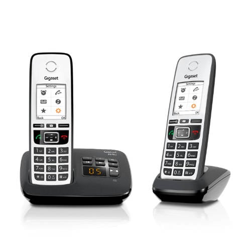 De Gigaset AL220A duo is een comfortabele dect telefoon met gebruiksvriendelijke toetsen met een duidelijk en gevoelig drukpunt en een verlichte handsfree-toets. De Gigaset AL220A duo is ontworpen voor eenvoudig en plezierig telefoneren. Het verlichte, grafische display is gemakkelijk af te lezen en te gebruiken. Als je je handen tijdens een gesprek vrij wilt hebben, dan druk je eenvoudig op de verlichte handsfree-toets voor meer bewegingsvrijheid. De lange gesprekstijd van 18 uur en de lange standby-tijd van 200 uur van de Gigaset AL220A duo zorgen ervoor, dat de handset altijd gereed is voor gebruik en dat je niet bang hoeft te zijn voor lege batterijen tijdens een gesprek.Antwoordapparaat: toegang via de handsetHet antwoordapparaat van de Gigaset AL220A duo heeft een opnametijd van maximaal 25 minuten voor inkomende berichten. Tijdens de weergave van berichten wordt de datum en tijd van ontvangst gesproken weergegeven. En ook als je niet bij het basisstation staat, weet je of er nieuwe berichten zijn binnengekomen: nieuwe berichten worden weergegeven op de handset. Je hebt heel eenvoudig en comfortabel via de handset toegang tot je berichten. En ook als je niet thuis bent, kun je je berichten op de Gigaset AL220A duo controleren dankzij de toegang op afstand. ECO DECT: pure energiebesparing zonder DECT-signaalDe zuinige netadapter van de Gigaset AL220A duo verbruikt minder elektriciteit, wat beter is voor het milieu én jouw portemonnee. Net als alle andere draadloze Gigaset-telefoons vermindert dit toestel variabel het DECT-signaal tussen handset en basisstation naarmate het toestel zich dichter bij het basisstation bevindt. Bovendien schakelt de ECO Mode Plus het DECT-signaal uit zodra de telefoon zich in de standby-stand bevindt.