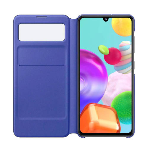 Wallet Cover voor Samsung A41Deze zwarte wallet cover van Samsung beschermt je smartphone tegen krassen, vallen en stoten. De voorkant van de hoes beschikt over een handig kijkgat, zodat je de meldingen die binnenkomen kan blijven zien. Hierdoor is het niet meer nodig om de hoes open te klappen.