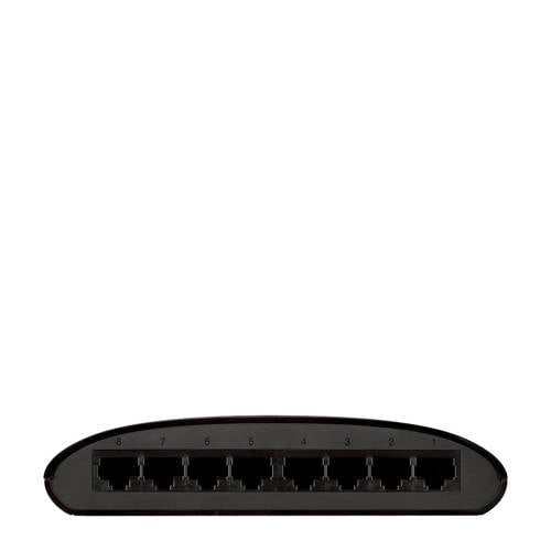 Deze D-link netwerk switch DES-1008D is speciaal bestemd voor thuis of klein kantoor gebruik. De switch biedt 8 10/100 MBit-aansluitingen voor werkstations. Alle aansluitingen herkennen automatisch de overdrachtsnelheid (10 MBit/s of 100 Mbit/s) van de aangesloten computers. De aansluitingen maken ook verschil tussen Full- en Half-Duplex-gebruik en ondersteunen Flow-Control.Uitbreiding is ook heel gemakkelijk via een MDI-uplinkpoort. Je kunt meerdere switches in cascade schalen via deze poort samen om meer poorten te hebben.Flow-Control conform IEEE 802.3x maakt ook een directe verbinding tussen server en switch mogelijk voor een snelle en betrouwbare dataoverdracht. Met 200 Mbit bij Full-Duplex-gebruik levert deze switch datakanalen met hoge snelheid en geringe verliespercentages aan je server.Afmeting hxvxd 3,2x19,2x11,8 cm