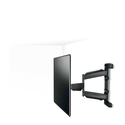 Vogel's tv-muurbeugel BASE 45M, met een extra brede draaihoek tot 90 graden naar links of rechts. Geschikt voor platte schermen van 32 inch t/m 55 inch met een draaggewicht van 30 kg.
