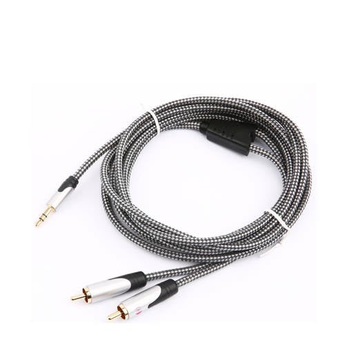De Jack 3.5mm- 2x RCA audio kabel van JVC is 1,5 meter lang en heeft vergulde verbindingen.
