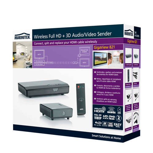 Met de Mamitek Gigaview 821 verbind, splits en vervang je draadloos een HDMI kabel. Hierdoor kun je je HDTV of -projector plaatsen waar je maar wilt. Monteer de ontvanger (onzichtbaar) achter je HDTV of aan het plafond bij je projector. Bekijk tot 2 (HD) apparaten, zoals Blu-ray spelers, digital video recorders (DVRs), HD set-top boxes, PS3 of Xbox game consoles, of standaard DVD spelers/ recorders, elders in je woning en schakel eenvoudig tussen de aangesloten bronnen, zonder ompluggen. De GigaView 821 is geschikt voor Full HD 1080p en alle 3D formaten. Door de ingebouwde HDMI splitter kun je ook op de zender een HDTV aansluiten om lokaal de aangesloten apparatuur te kunnen blijven bekijken. Bedien je A/V bronnen vanuit elke hoek, zelfs door een muur of kastdeurtje heen door de ingebouwde IR ontvanger. Het HD signaal ondervindt geen vertraging en is daarmee perfect geschikt voor spelconsoles.