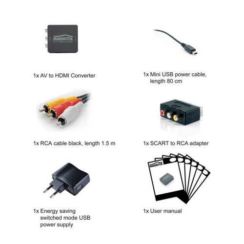 Met de Marmitek Connect AH31 sluit je een video bron (DVD speler, video recorder, beveiligingscamera, etc.) met SCART of RCA uitgang aan op een HDTV of projector met HDMI ingang. Converteer een AV signaal (composiet en stereo audio) naar een HDMI signaal (720p/ 1080p).Voordelen+ Geen installatie van software noodzakelijk en dus snel en eenvoudig te gebruiken+ Met ingebouwde 720p/ 1080p keuzeschakelaar+ Connect AH31 - RCA / SCART naar HDMI converter