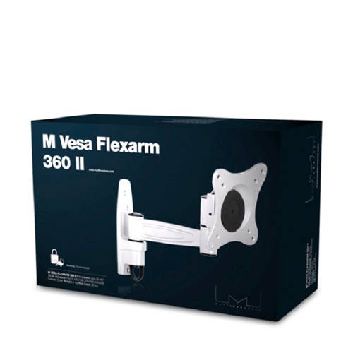 De M VESA Flexarm 360 biedt een flexibel alternatief voor vaste muurbeugels voor tv's met een gewicht tot 15 kg. Multibrackets VESA Flexarm 360 kan zowel kantelen als draaien. Toch kan je, je monitor/ of TVbeveiligen met het meegeleverde hangslot. Perfect voor openbare omgevingen waar flexibele installaties en beveiliging van groot belang zijn. Natuurlijk nog beter voor thuisinstallatie dankzij de snelle en eenvoudige installatie in combinatie met de handige kantel- en rotatiefunctie.De nieuwe flexibele en veilige oplossing om je nieuwe smart TV te monteren.• De VESA Flexarm 360 kan zowel kantelen als draaien.• Beveilig je monitor/ smart TV met het meegeleverde hangslot.Geschikt voor schermen van 15-26 inch, 26-37 inchVesa: 75x75-100x100-100x200-200x200