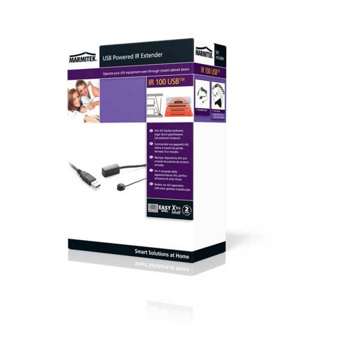 Heb je een Apple TV, Android box of bijvoorbeeld een ander slim kastje bij uw tv staan? Dan kun je deze eenvoudig uit het zicht plaatsen en blijven bedienen met de Marmitek IR 100 USB. Je bevestigt je Apple TV en eventuele andere kastjes aan de achterkant van je tv scherm en sluit de Marmitek IR 100 USB aan. Plaats vervolgens de IR ontvanger en zender (blaster LED) en je bent klaar!Je kunt de Marmitek 100 USB van voeding voorzien door deze op de USB uitgang van uw televisie aan te sluiten. Wanneer je televisie niet over een USB uitgang beschikt kun je gebruik maken van een USB voedingsadapter (niet meegeleverd)