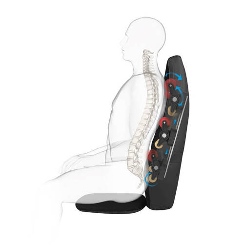 ‘Complete Wellness massage voor thuis, kantoor en onderweg!’Met het MC 810 vibratie massagekussen kunt u uw gehele rug heerlijk masseren met maar liefst vier massagezones in uw rug en een vibrerend zitvlak voor extra ontspanning. De MC 810 beschikt over negen vibrerende massage-programma’s met elk een andere combinatie van golven, kneden, kloppen en pulseren. Schakelt u daarnaast nog de extra warmtefunctie in, dan ervaart u het complete wellness-gevoel!En deze weldaad kunt u niet alleen thuis of op kantoor in vrijwel elke stoel ondergaan, maar wat dacht u van onderweg, in de auto? Dankzij de meegeleverde autoadapter zal uitstappen na een lange rit aanvoelen alsof u zojuist vertrokken bent. Geen vervelende positiewisselingen meer om spieren niet stijf te laten worden, maar heerlijk soepele, goed doorbloede spieren die u dankbaar zullen zijn voor deze weldoener! Geleverd met afstandsbediening waarmee u eenvoudig de duur en gewenste massage instelt.