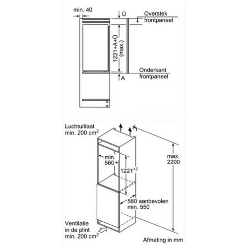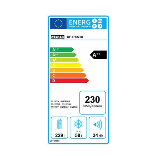 Deze Miele KF 37122iD inbouw koelvriescombinatie met een energieklasse A++ is geschikt voor een nismaat tot 177,8 cm. Deze koelkast is voorzien DynaCool en ComfortClean. De DynaCool-functie zorgt voor een gelijkmatige temperatuur in de gehele koelruimte. Het is niet meer belangrijk op welk niveau je welke levensmiddelen bewaart, want koude lucht circuleert gelijkmatig. De bij traditionele koelkasten bekende scheiding 'boven warmer, beneden kouder' hoort nu met DynaCool tot de verleden tijd. En de ComfortClean-opbergvakken in de binnendeur bestaan uit hoogwaardig SAN-kunststof en zijn bijzonder kras-, chemicaliën- en temperatuurbestendig. Alle opbergvakken in de binnendeur mogen gewoon in de vaatwasser (tot 55°C) om hygiënisch te reinigen. Daardoor is het met de hand afwassen van de bakjes niet meer nodig. Het koelgedeelte heeft een royale inhoud van 224 liter en is voorzien van 5 plateaus gemaakt van veiligheidsglas (4 in hoogte verstelbaar. Het 4 sterren vriesgedeelte heeft een inhoud van 57 liter en 2 transparante diepvriesladen. Het koelgedeelte wordt automatisch ontdooit en dankzij de Miele ComfortFrost technologie hoef je het vriesgedeelte minder en vaak te ontdooien. Dankzij de verdampers zal ijs zich veel langzamer opbouwen tegen de wanden van de binnenruimte dan bij de traditionele techniek. De KF 37122iD beschikt over een sleepdeursysteem, de draairichting is eventueel aan te passen.SleepdeursysteemBij het sleepdeursysteem wordt de koelkast door middel van een sleepgeleider aan het keukenpaneel wordt bevestigd. De keukenkast is hierbij aan het keukenpaneel verbonden door scharnieren.Draairichting deur verwisselbaarDe handige omkeerbare deur maakt het mogelijk je koelkast zo te plaatsen als het je uitkomt. In een handomdraai maak je de deur linksdraaiend in plaats van rechtsdraaiend. Afmetingen en gewicht:- Inbouwafmeting (hxbxd): 177,2-177,8x56-57x55 cm- Afmeting (hxbxd): 177x54x54,4 cm- Aansluitsnoer: 2,1 meter- Gewicht 58,9 kg