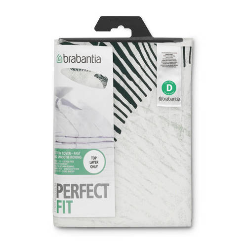 Brabantia katoenen strijkplankovertrek met 2 mm schuimlaag maat D (135 x 45 cm). Deze Brabantia Fern Shades strijktafelovertrek zit altijd strak en kan gewassen worden. Geschikt voor normaal- en stoomstrijken.- 100% katoen- Wasbaar - Geschikt voor strijktafels met bladmaat 135 x 45 cm- 2 jaar garantie