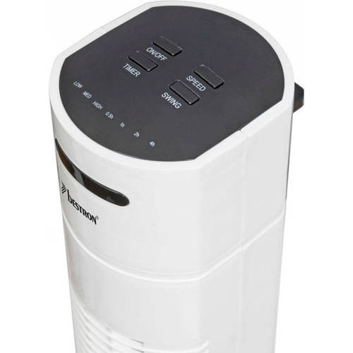Bestron AFT770WRC torenventilator met afstandsbediening en digitale timer. Uitgerust met een hoogwaardig kopergewikkelde motor, dus robuust en stabiel. Bediening via schakelpaneel of afstandsbediening. Uitschakelen met timer (tot max. 7.5 uur), Zwenkfunctie van 75°. Geruisarm. Met GS-gecertificeerd keurmerk = extra hoge kwaliteit en veiligheidsstandaard en 5 jaar garantie.
