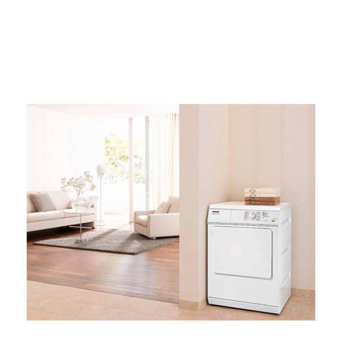 *Dit type droger voert de vochtige lucht af naar buiten. Dit gebeurt via een slang door een raam of muur. Kan of wil je geen afvoerslang naar buiten, kies dan voor een warmtepompdroger of condensdroger.Miele luchtafvoerdroger T8703 De droger is voorzien met energieklasse C en heeft vijf verschillende droogprogramma's, zoals Auto, Cotton, Delicate/silk en Wool. Je bepaalt je programma keuze via de draaiknop, en de droger laat via lampjes zien in welke fase van het droogproces hij bezig is. Je ook voor een anti-kreuk optie kiezen of voor een koude luchtstroom. Zelfs het aansluiten van de afvoerslang is heel eenvoudig. Via een geluidssignaal laar de droger weten dat het droogproces beeindigd is. Je kunt deze functie uitschakelen als dit wenst. Verder is het leeghalen van de droger vergemakkelijkt door de aanwezige trommelverlichting. Ook het pluizenfilter is gemakkelijk te reinigen.