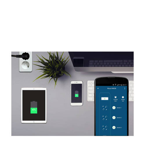 Zolang je toegang hebt tot internet, kan je jouw huishoudelijke apparaten op afstand bedienen via de Woox slimme stekkerdoos Smart Multi Plug R4028 altijd en overal. Gebruik jouw mobiele telefoon om een waterkoker op afstand aan te zetten, de lampen in de woonkamer aan te zetten, de luchtreiniger in gebruik te nemen of de boiler aan te zetten. Het is allemaal klaar met slechts een paar tikken in de intuïtieve Home-app. Deze slimme stekkerdoos heeft 3 stopcontacten en 4 usb aansluitingen. Werkt met spraakbedieningDe Woox Smart Multi Plug werkt rechtstreeks samen met Amazon Alexa, IFTTT en Google Assistant om jouw apparaten te beheren via stembesturing. Wijs een naam toe aan jouw slimme stekkerdoos en communiceer eenvoudig wanneer je een spraakopdracht geeft. Je kunt ook een groep voor al jouw slimme apparaten maken en ze allemaal beheren. De Smart Multi Plug werkt met elke Wifi-router (2,4 GHz) zonder een aparte hub of betaalde abonnementsservice.Nooit meer piekerenGebruik de energiebesparende en milieuvriendelijke tijdschakelknopfunctie om gewone kleine apparaten thuis gebruiksvriendelijker te maken. Een Woox Smart Plug kan hun levensduur verlengen door ze slim te maken. Piekeren over het al dan niet uitschakelen van de verlichting of het uitschakelen van jouw apparaten tijdens het reizen is voorbij. Bekijk de status van je apparaten op elk gewenst moment via de Woox Home-app en bedien de aan/uitschakelaar om elektriciteit te besparen.