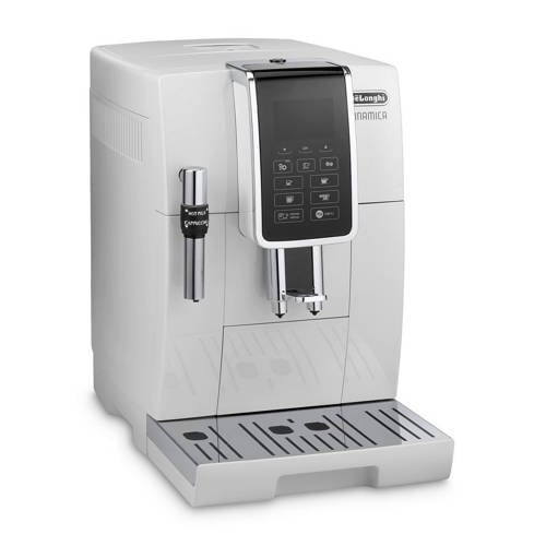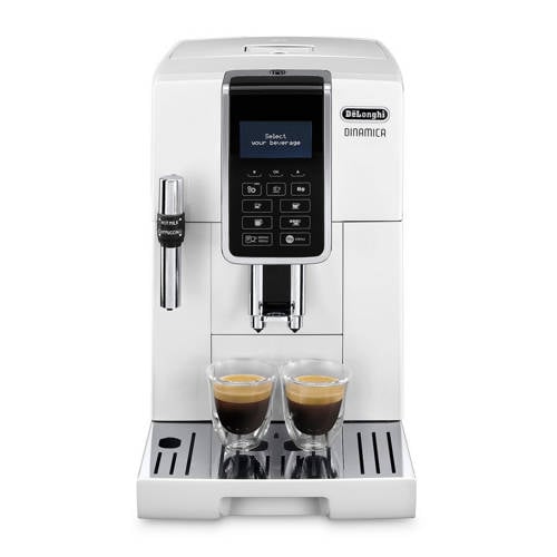 Met de DeLonghi ECAM350.35.W koffiemachine geniet jij vanjouw perfecte kopje koffie. De conische, metalen, maalmolen in deze machine zorgt voor de perfecte maling en dankzij het thermoblock is je koffie altijd op de ideale temperatuur. De koffiesterkte, maalgraad en temperatuur zijn instelbaar. Met het stoompijpje maak je heerlijk en romig melkschuim voor een Italiaanse cappuccino.Efficiënt bedieningspaneelDankzij het eenvoudige en efficiënte bedieningspaneel met LCD display is het gemakkelijk om elke soort koffie te bereiden. Bereidt espresso's, ristretto's en lungo's met één druk op de knop, het apparaat maalt de perfecte hoeveelheid koffiebonen en duwt het water onder hoge druk door de koffie. Met ‘MY’ functie kun je jouw drankje perfect instellen op eigen smaak door aroma en koffie-/ melk hoeveelheden aan te passen.Eenvoudig in onderhoudHet apparaat is zeer eenvoudig in onderhoud dankzij de uitneembare zetgroep en automatisch ontkalkingssysteem.Specificaties- Aansluitwaarde: 220/240 – 50/60 - Pompdruuk: 15 bar- Digitaal display- Conische metalen maalschijven- Inhoud bonenreservoir: 300 gram- Inhoud waterreservoir: 1.8 liter- Stoompijpje melkschuim- Automatisch ontkalkingssysteem|- Koffiesterkte instelbaar- Maalgraad instelbaar- Waterhoeveelheid instelbaar- Uitloop verstelbaar van 84 tot 135 mm- Heet water functie- Automatische uitschakeling- Stand-by instelling- Geheugenfunctie- Kleur: wit- Garantietermijn: 2 jaarAfmetingen en gewicht- Afmetingen (hxbxd): 40x29x49.5 cm- Gewicht: 9.5 kgInhoud verpakking:- Volautomaat, starterkit met 1x ontkalkingsmiddel, waterhardheidstest, koffiemaatlepel, waterfilter, gebruiksaanwijzing, netsnoer
