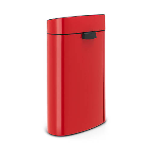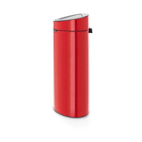 In deze Brabantia Touch Bin prullenbak met kunststof binnenemmer in de kleur Passion Red, gaat wel 40 liter afval en is een must voor elke keuken, maar ook in hobbyruimte of kantoor misstaat die niet. De Touch Bin is ruimtebesparend door de vlakke achterwand en door de 'Soft-Touch' sluiting opent en sluit het deksel geruisloos. De kunststof binnenemmer heeft ventilatiegaatjes, die een vacuüm voorkomen bij het verwisselen van de afvalzak. Deze Touch Bin wordt geleverd meteen proefverpakking van Brabantia PerfectFit afvalzakken (code L) welke gemakkelijk en praktisch onzichtbaar zijn aan te brengen.Specificaties- Brabantia 'Soft-Touch' sluiting- Eenvoudige en lichte bediening- Unieke scharnierconstructie- Deksel gaat geruisloos open- Afneembare dekselunit (afvalzak makkelijk te wisselen)- Afvalzak gemakkelijk te wisselen- Uitneembare kunststof binnenemmer- Stevige draaggreep - Ook volle Touch Bin gemakkelijk te verplaatsen- Gemaakt van duurzame, corrosiebestendige materialen- Kunststof bodemrand- Voorkomt beschadiging van de vloer- Grote opening: gemakkelijk afval weggooien zonder te morsen - Duurzaam en gemakkelijk te reinigen- Inhoud: 40 liter- Kleur: Passion Red- 10 jaar garantieAfmetingen en gewicht: - Afmeting (hxbxd): 72,7x43,5x30,2 cm - Gewicht: 5,6 kg