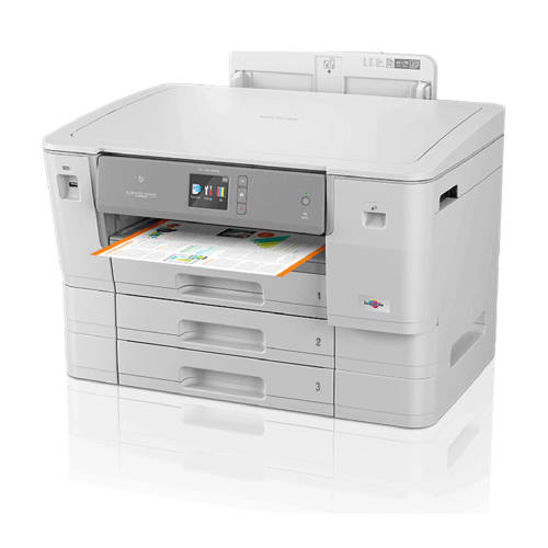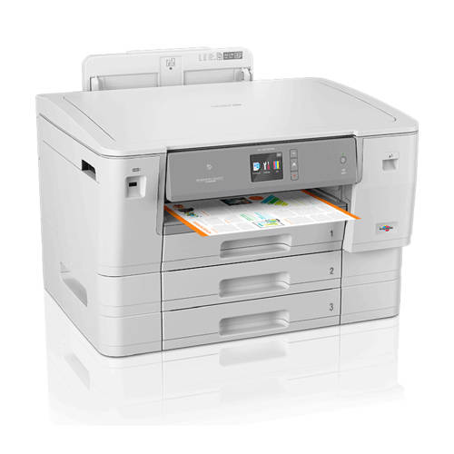 De Brother MFC-J6945DW is een professionele all-in-one kleuren inkjetprinter speciaal ontworpen voor moderne bedrijven. Verhoog met deze professionele kleuren inkjetprinter van Brother de productiviteit en efficiëntie met automatisch dubbelzijdig printen, dubbelzijdig scannen of kopiëren tot A3-formaat en een papiercapaciteit van 500 vel verdeelt over twee papierladen. De optionele super hoge capaciteit inktcartridges waarmee tot wel 6.000 pagina in zwart en 5000 pagina’s in kleur afgedrukt kan worden, zorgen voor een zeer lage prijs per pagina. Met printsnelheden tot 35 pagina’s (zwart wit) en 27 pagina’s (kleur) per minuut. De MFC-J6945DW beschikt over diverse verbindingsmogelijkheden, zoals een bekabelde en draadloze netwerkverbinding. Daarnaast is het mogelijk om op diverse manieren te printen vanaf mobiele apparaten zoals smartphones en tablets. Dankzij de papiercapaciteit van 500 vel zijn gebruikers geen onnodige tijd meer kwijt aan het steeds bijvullen van de papierladen en kunnen ze tijd besteden aan belangrijke zaken. Dankzij de twee papierladen is het tevens mogelijk om verschillende soorten papier te gebruiken zonder te wisselen, zoals gekleurd papier of voorbedrukt factuurpapier. Via de universele papierinvoer voor 100 vel is het ook mogelijk om dikkere papiersoorten tot 230 gr/m2 te printen.Gebruik het 9,3 cm LCD touchscreen voor toegang tot een reeks van geavanceerde, tijdbesparende scanfuncties waaronder scannen naar USB, e-mailserver, OCR, netwerkmap of een FTP-server. De printer beschikt tevens over diverse ingebouwde Brother apps en oplossingen. Je kunt ook direct vanaf de MFC-J6945DW zonder tussenkomst van een pc verbinding maken met populaire web- en clouddiensten zoals Dropbox, Evernote®, OneDrive en Google Drive™.De handige inktniveau indicatie zorgt ervoor dat je nooit voor verassingen komt te staan, als blijkt dat één van de inktcartridges leeg is en je toch moet printen. De indicatie geeft volledig inzicht in de hoeveelheid inkt die zich nog in de cartridges bevindt, zodat je precies weet wanneer deze vervangen moeten worden.Techniek- Afdrukmethode: inkjetprinter- Geheugen 512 MB- Dual access: ja, scan een te verzenden fax terwijl je een fax ontvangt (zwart-wit).- Printen, Kopiëren, Scannen, Faxen- Media Card Centre: USB stickAfdruk- Afdruksnelheid: 35 pagina's/min monochroom, 27 pagina's/min kleur- Automatisch dubbelzijdig afdrukken: Ja - Afdruksnelheid (ISO/IEC 24734) Zwart-wit: 22 ipm- Afdruksnelheid (ISO/IEC 24734) Kleur: 20 ipm- Afdruksnelheid (ISO/IEC 24734) Zwart-wit duplex: 12 ipm- Afdruksnelheid (ISO/IEC 24734) Kleur duplex 11 ipm- Duplex – functies: Automatisch dubbelzijdig printen tot A4 formaat- Maximaal papierformaat: A3- Randloos printen: Ja, bij enkelzijdig printen- Printresolutie: 4800 x 1200 dpi- Kleuren: Magenta, Geel, Cyaan, ZwartScannen- Scanresolutie OptischTot 1200 x 2400 dpi (FB)- Scanresolutie Geïnterpoleerd tot 19200 dpi - Optimalisatie functies: automatisch rechtzetten, automatisch detecteren en verwijderen van blanco pagina’s, automatisch achtergrond kleuren verwijderen, ID Scan, 1 naar 2 scan, PDF bestand van meerdere pagina’s of afzonderlijke PDF1- Scannen naar bestand, scan direct naar bestand op je computer- Scannen naar afbeelding, scan direct naar een beeldbewerkingsprogramma- Scannen naar e-mail, scan direct als bijlage van een te verzenden e-mailbericht- Scannen naar OCR, scan direct naar leesbare tekst- Scannen naar USB, scan direct naar een USB-opslagmedium, Zonder tussenkomst van een computer- Scannen naar netwerk map, scan direct naar bestand op je netwerk. Zonder tussenkomst van een computer- Scannen naar SharePoint, scan direct naar Microsoft SharePoint1- Type scanner: Contact Image Sensor (CIS)Faxen-Modemsnelheid fax: 33,6 kbps- PC-FAX: ja- Snelkiesnummers: 100- Verzend-/ontvangstgeheugen: tot 180 pagina's- ECM (Foutencorrectie): Indien beide machines gebruik maken van ECM, worden fouten tijdens het verzenden opgemerkt waarbij regels met fouten opnieuw worden verzonden.- Fax doorzenden: JaKopiëren- Kopieerresolutie: tot 600 dpi- Kopiëren zonder pc: Ja- Vergroten/verkleinen:25 - 400% in 1% stappenPapier- en mediabeheer- Papieruitvoer: tot 100 vel- Papiercapaciteit. universele invoer: 100 vel- Papiercapaciteit. papierlade: tot 250 vel- Papiercapaciteit. papierlade: tot 250 vel- Papiercapaciteit. ADF (Automatische documentinvoer) tot 50 velAansluitingen: Wi-Fi, Apple AirPrint, bedraad (USB), Google Cloud Print, Wi-Fi directAfmetingen- BxDxH: 57,5 x 47,7 x 37,9 cm- Gewicht: 24,2 kg