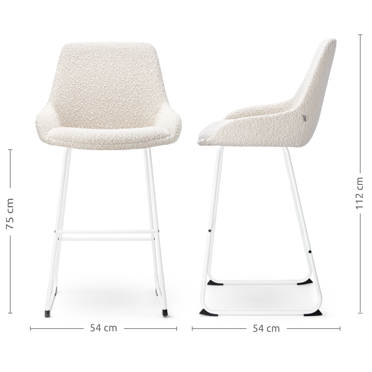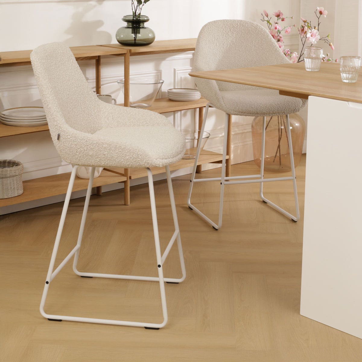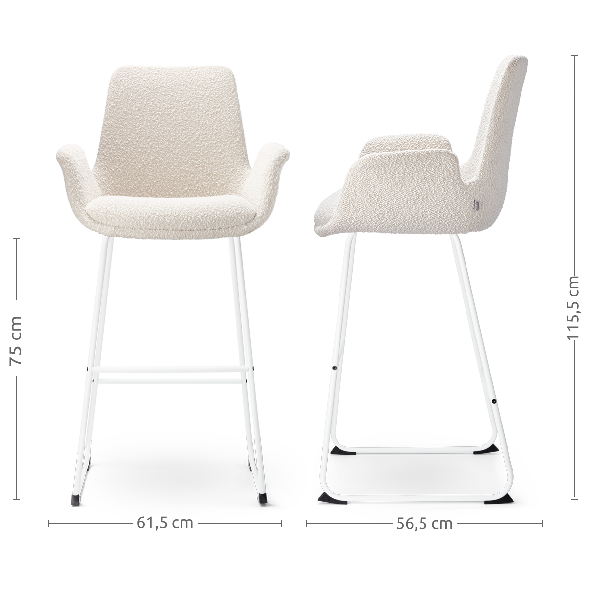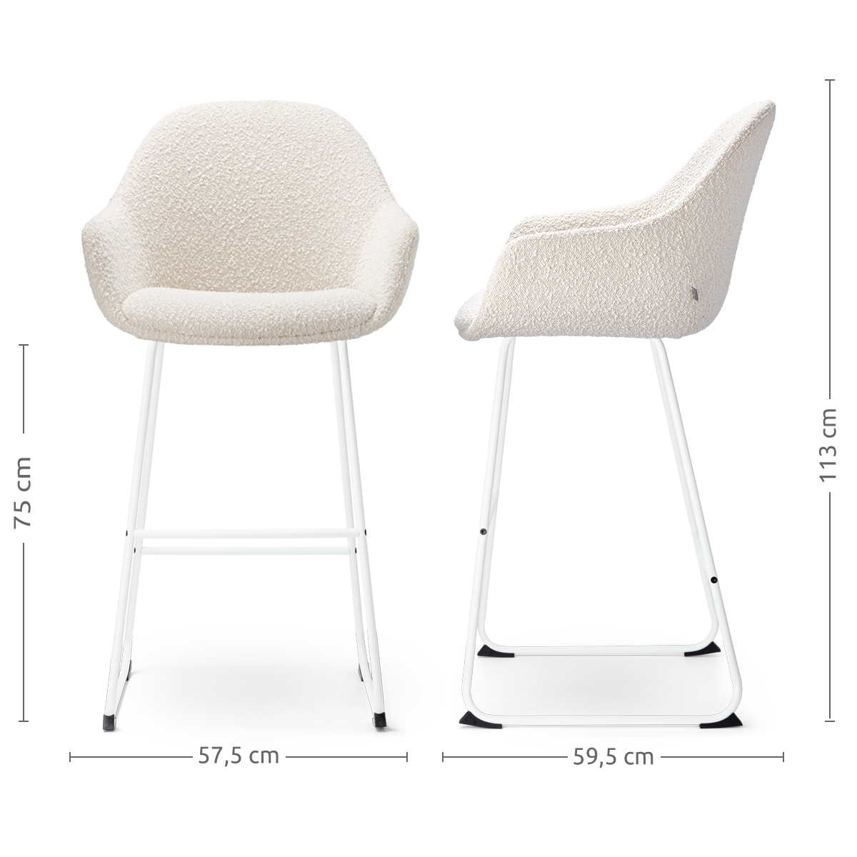 Nino Isa barkruk bouclé beige wit onderstel 75 cm
