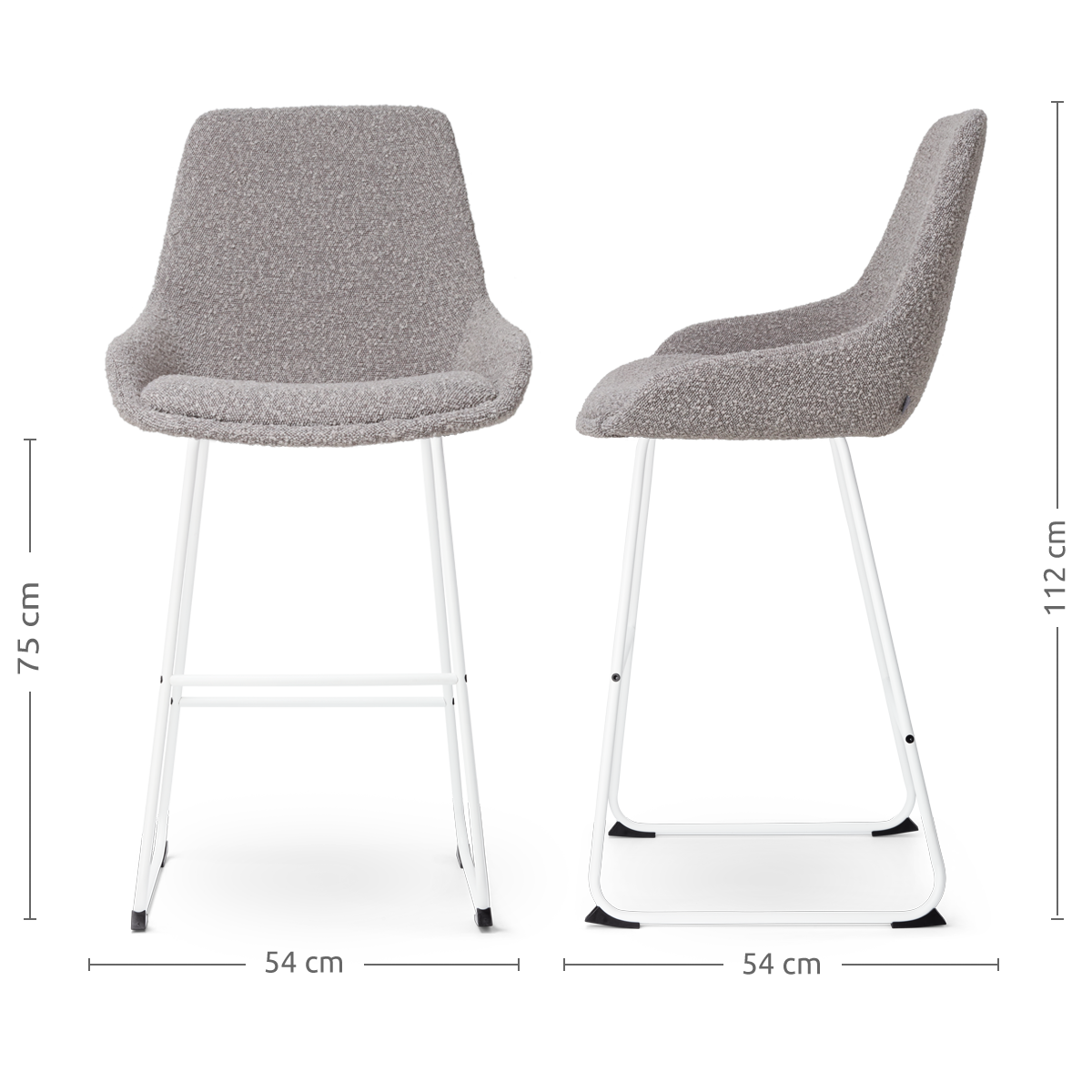 Taupe bouclé barkruk met armleuning - scandinavisch ontwerp. De Nino-Mae barkruk combineert eigentijdse stijl met ultiem comfort. De zachte bouclé bekleding in taupe geeft een luxe uitstraling en voelt heerlijk aan. Dankzij de ergonomische zitting met geïntegreerde armleuningen en een stevige voetsteun kun je urenlang comfortabel zitten. Met een zithoogte van 75 cm is deze barkruk perfect voor een hoge eettafel of bar met een bladhoogte tussen 98 en 105 cm. De witte metalen poten bieden niet alleen stabiliteit maar voegen ook een Scandinavische flair toe aan je interieur. Dit luchtige en minimalistische ontwerp past moeiteloos in een modern of Scandinavisch interieur. De volledig gestoffeerde zitting met houten binnenwerk zorgt voor een stevige maar comfortabele zitervaring. Of je nu een gezellige borrelavond organiseert of rustig een boek leest aan de bar, de Nino-Mae biedt altijd de juiste ondersteuning. Deze barkruk is ideaal voor wie stijl en