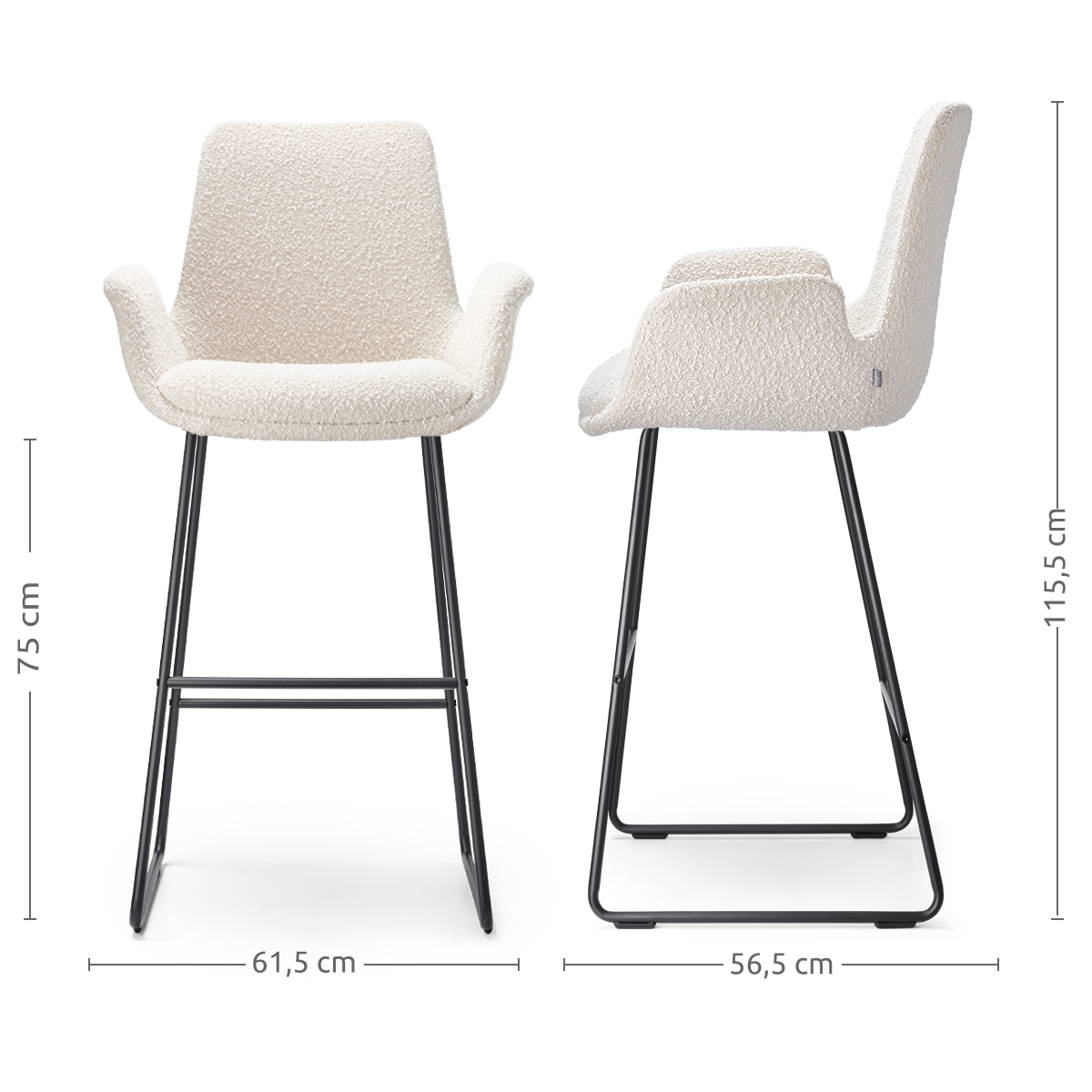 Nino Mae barkruk bouclé beige zwart onderstel 75 cm