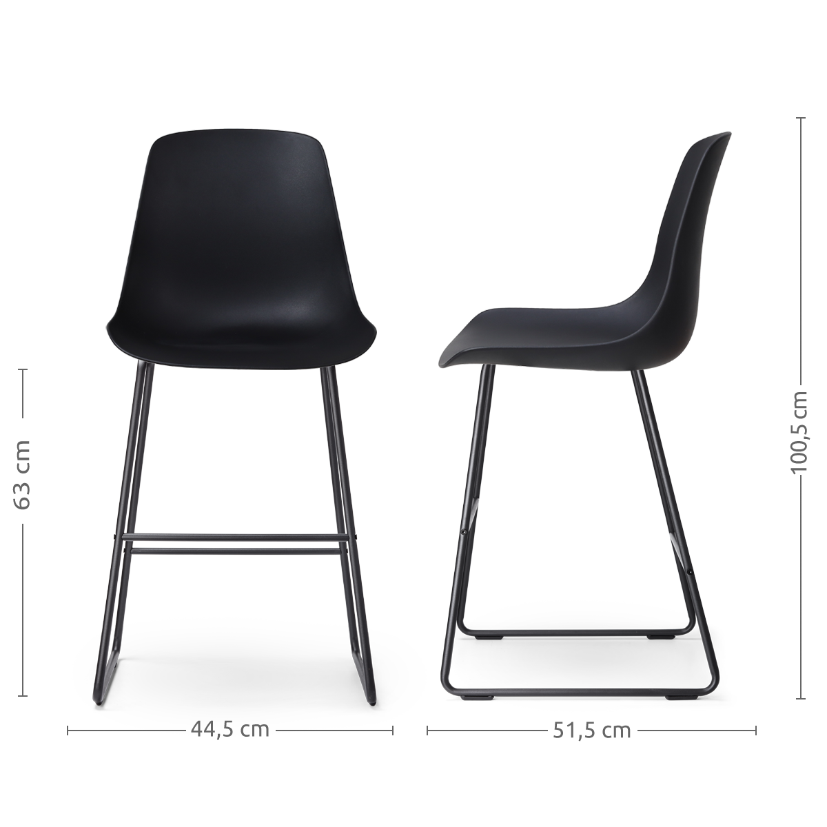 Nino Pip barkruk zwart zwart onderstel 65 cm set van 2