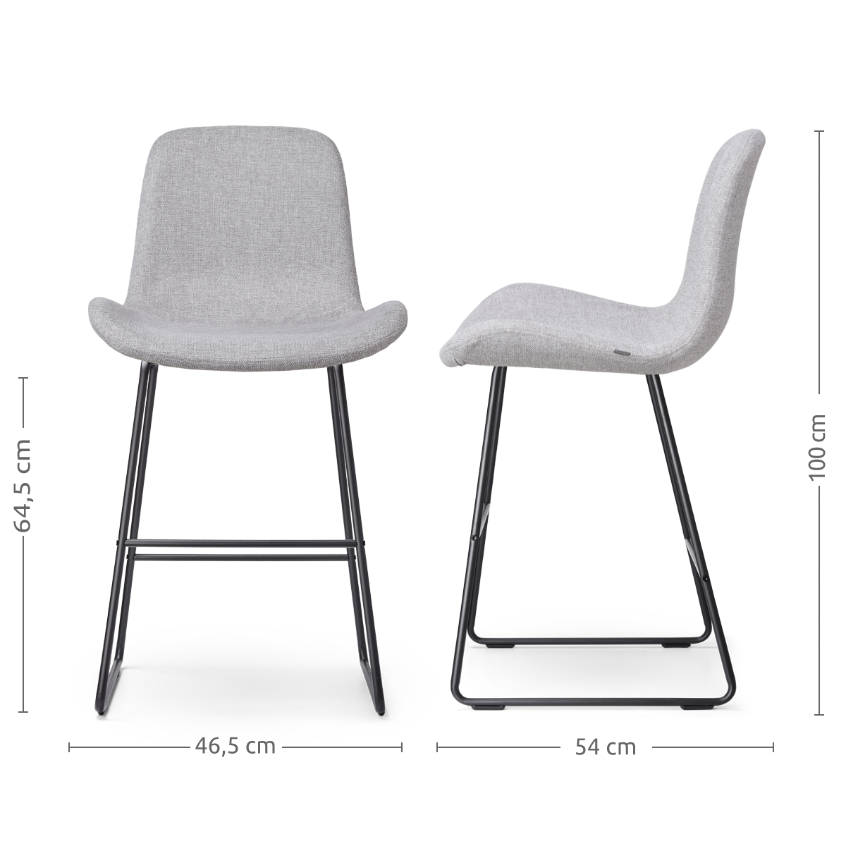 Nino Fé barkruk lichtgrijs zwart onderstel 65 cm set van 2
