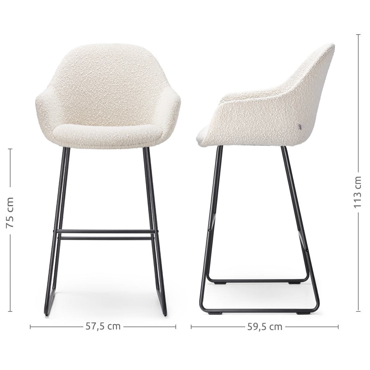Nino Isa barkruk bouclé beige zwart onderstel 75 cm set van 2