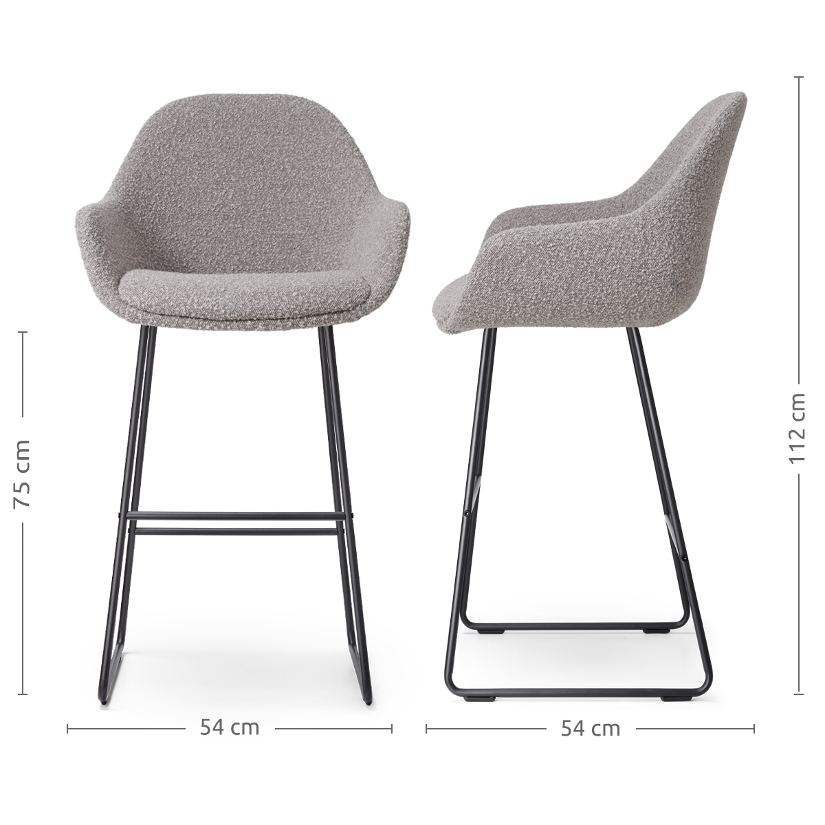 Nino Isa barkruk bouclé taupe zwart onderstel 75 cm set van 2