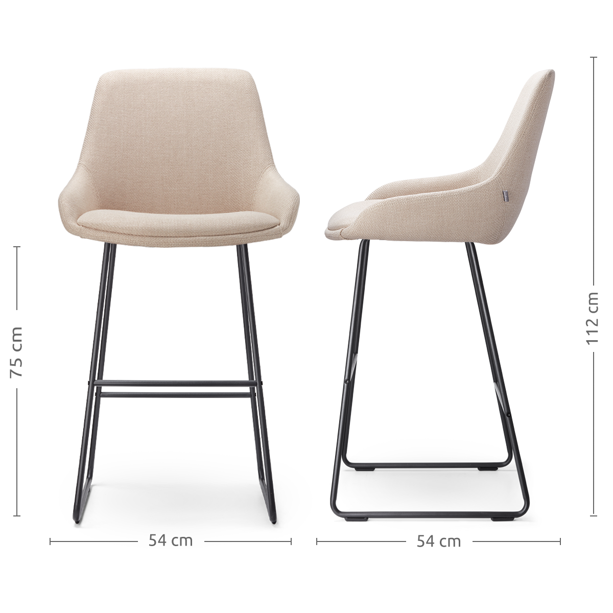 Nino Isa barkruk beige zwart onderstel 75 cm set van 2