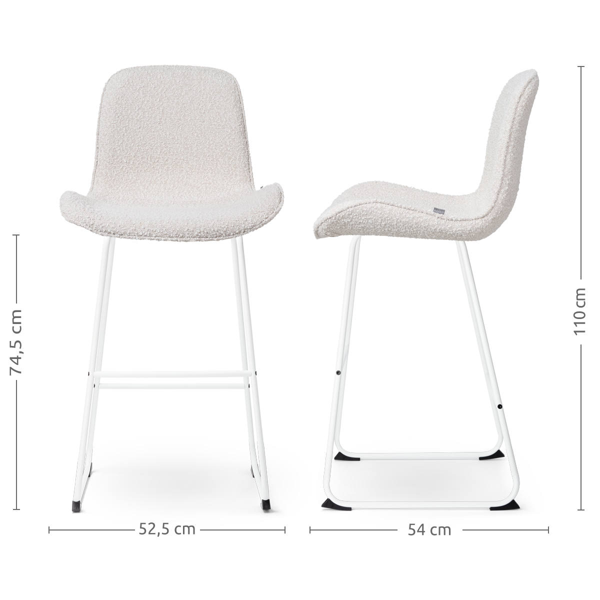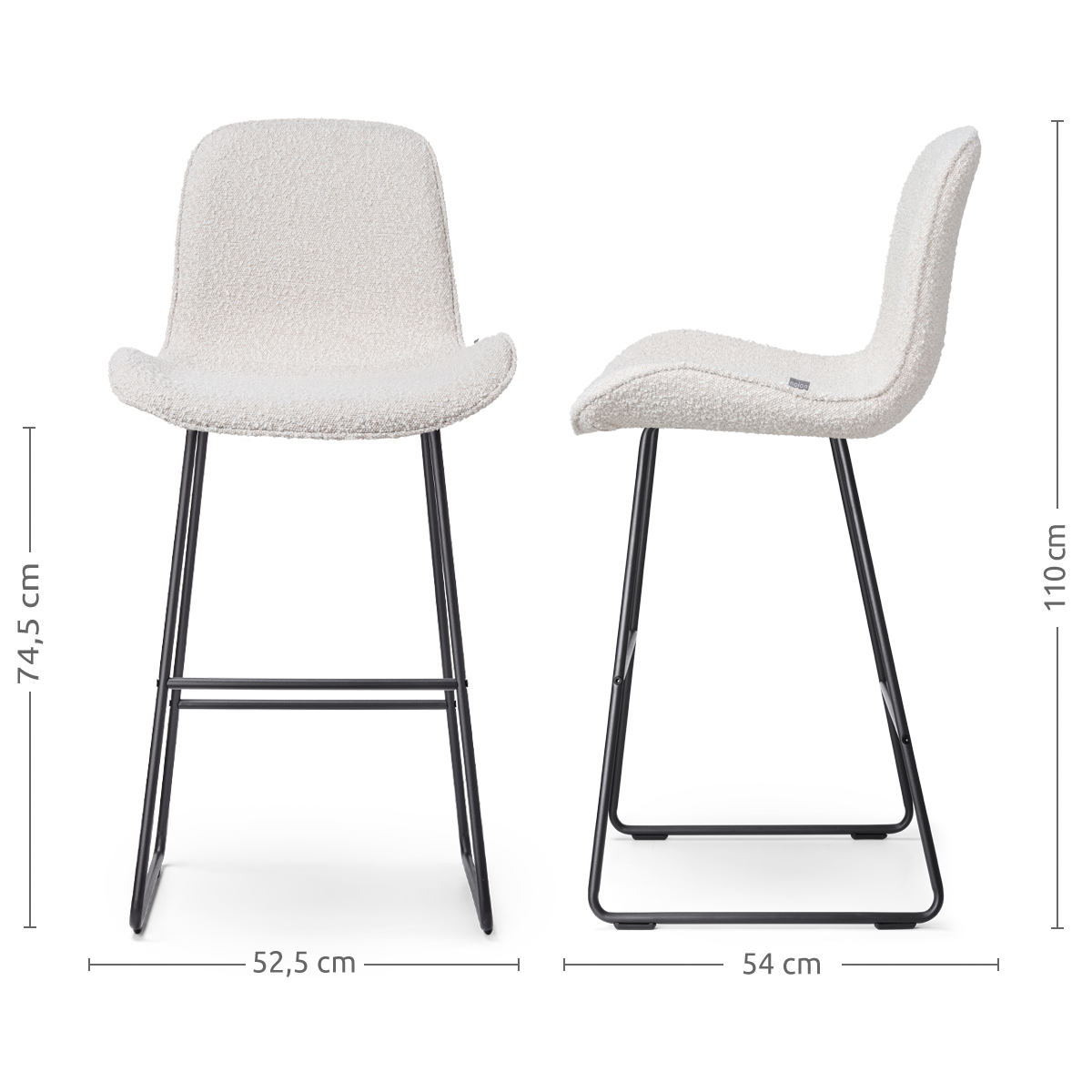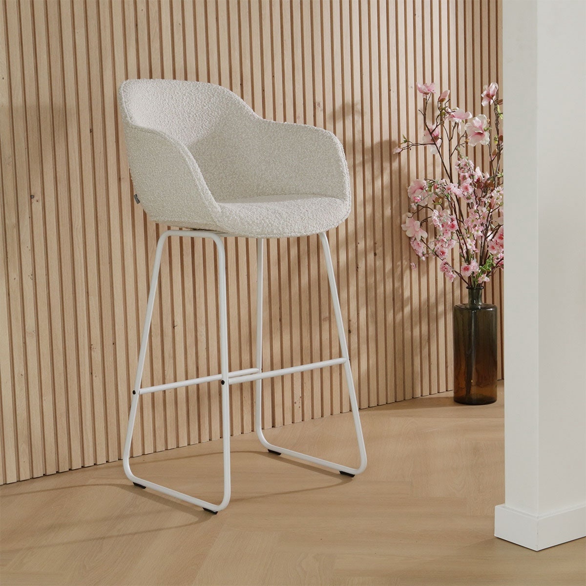Nino Isa barkruk bouclé beige wit onderstel 75 cm set van 2