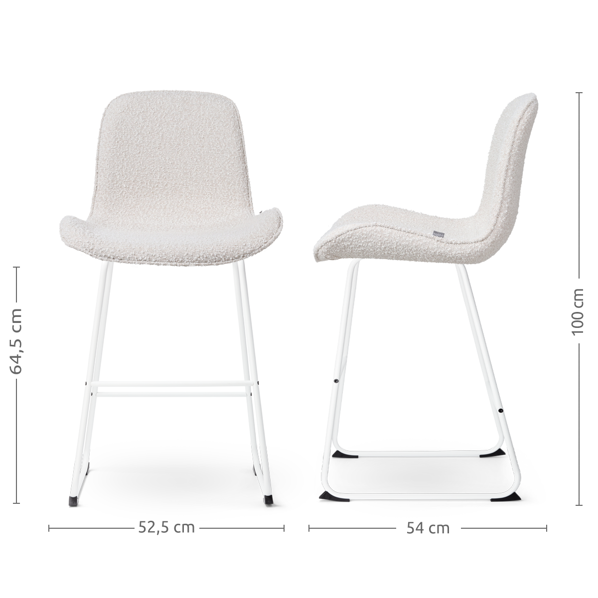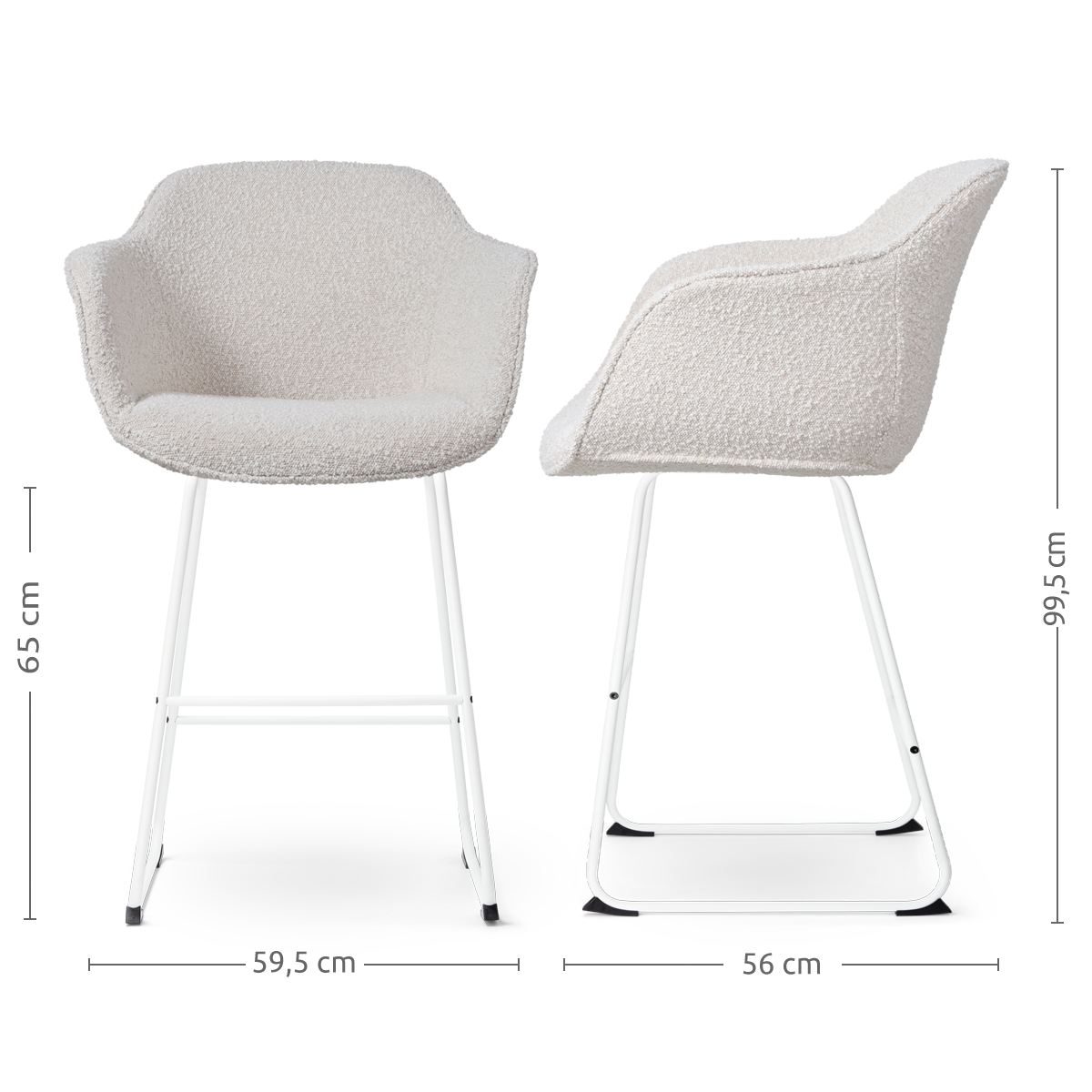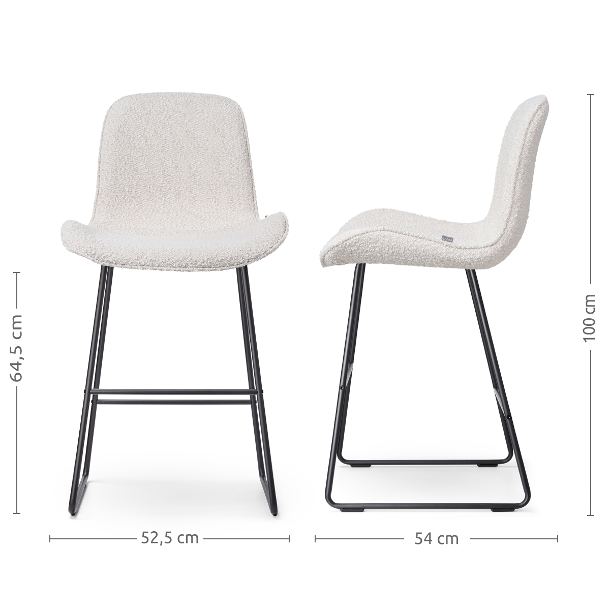Nino Isa barkruk bouclé beige wit onderstel 75 cm set van 2