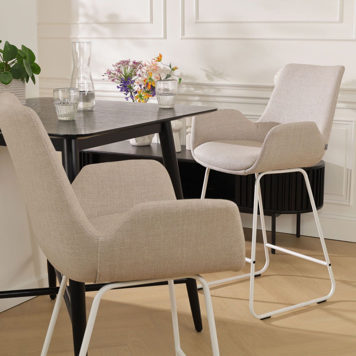 Nino Eef barkruk beige wit onderstel 75 cm set van 2