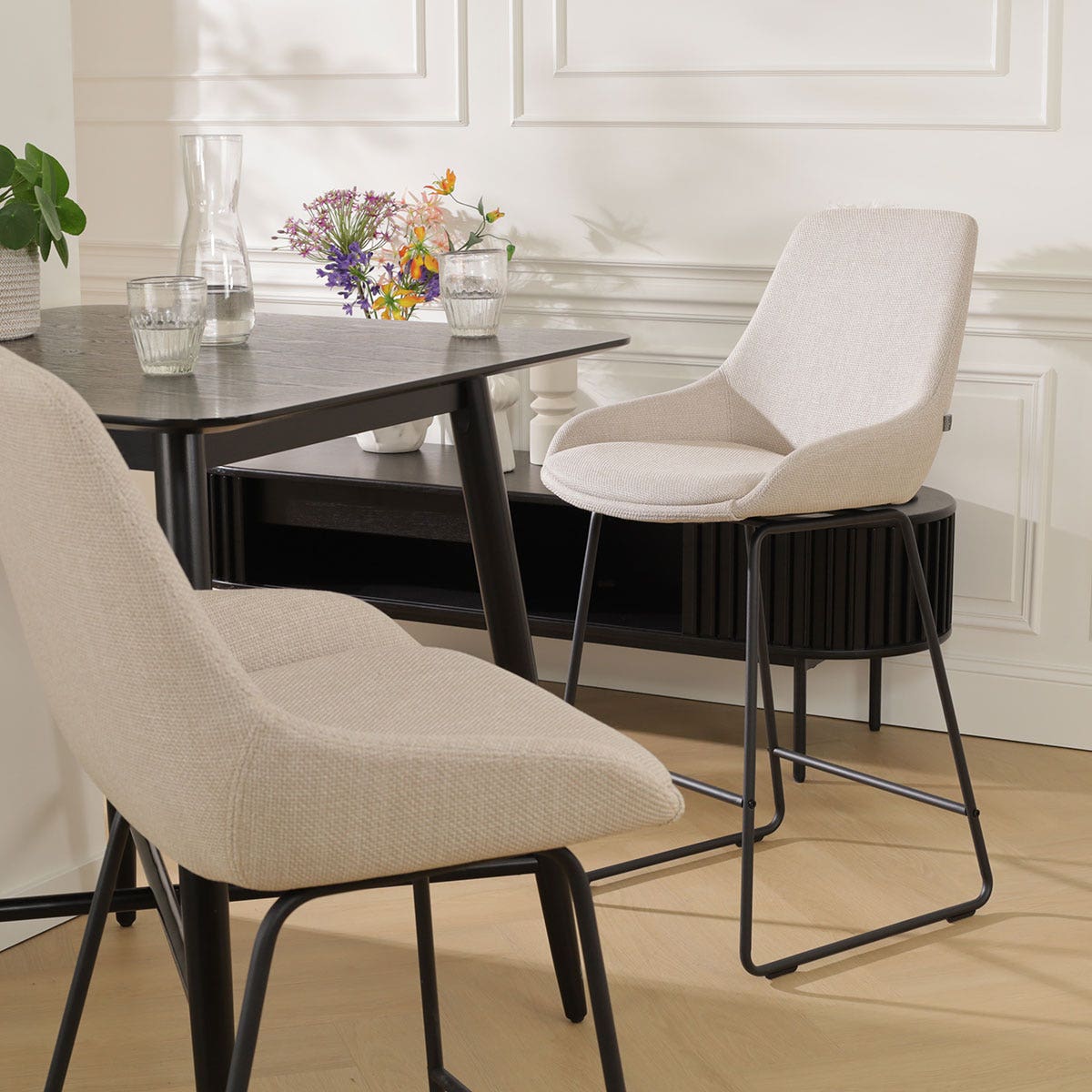 Nino Eef barkruk beige zwart onderstel 75 cm set van 2