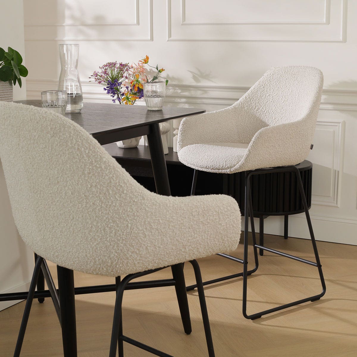 Nino Mae barkruk bouclé beige zwart onderstel 75 cm set van 2