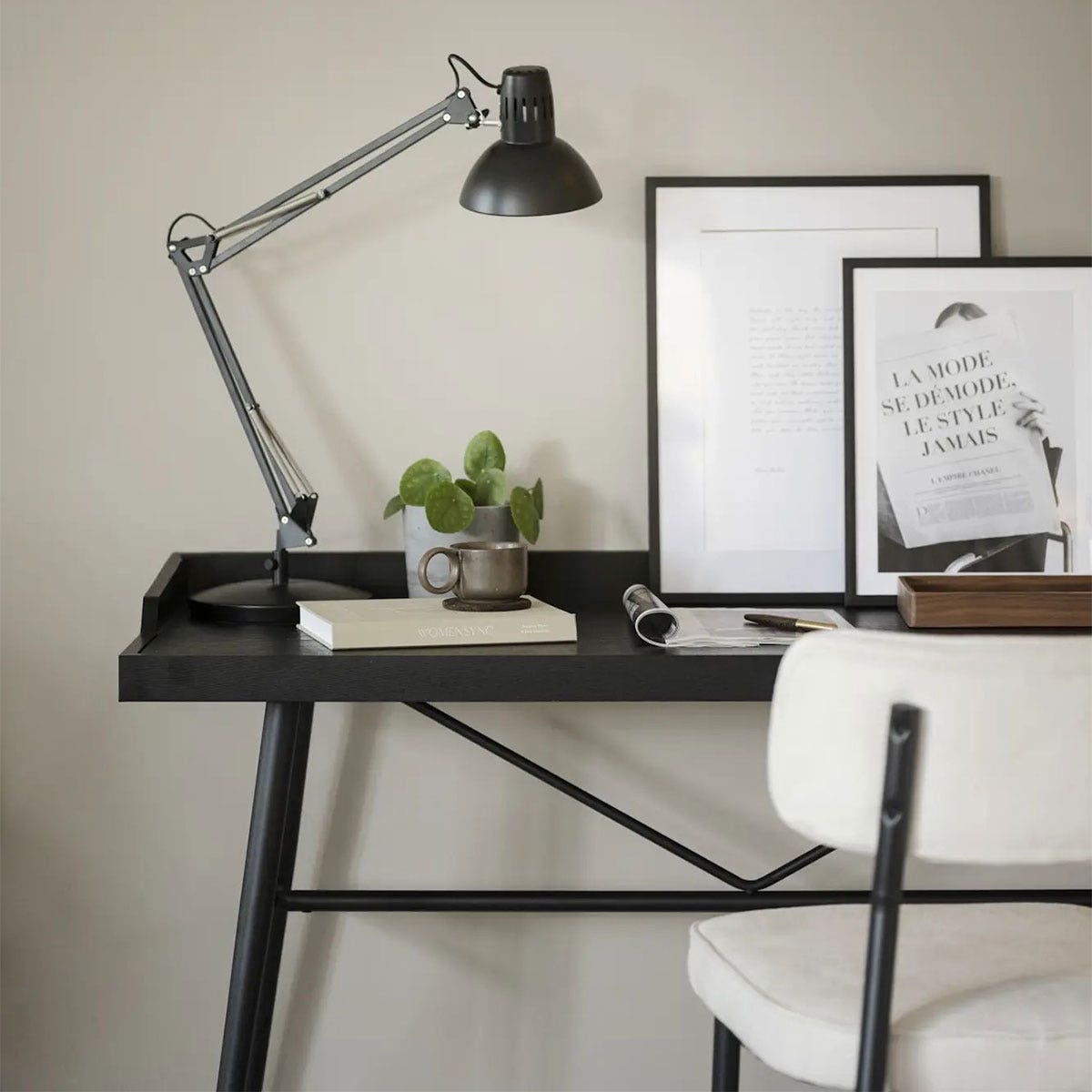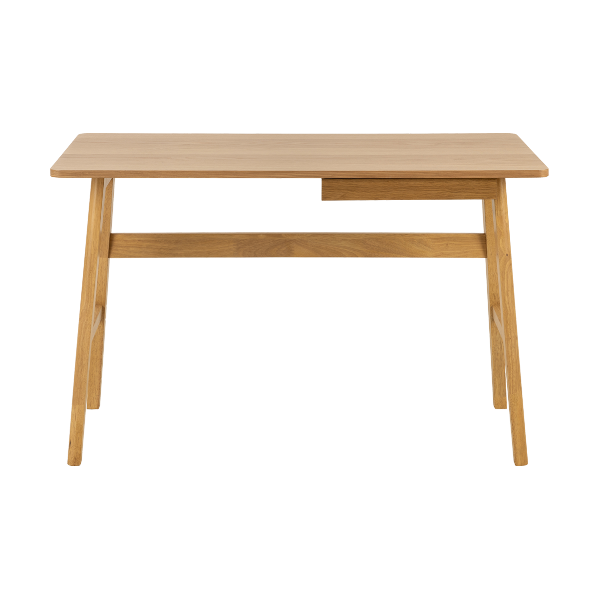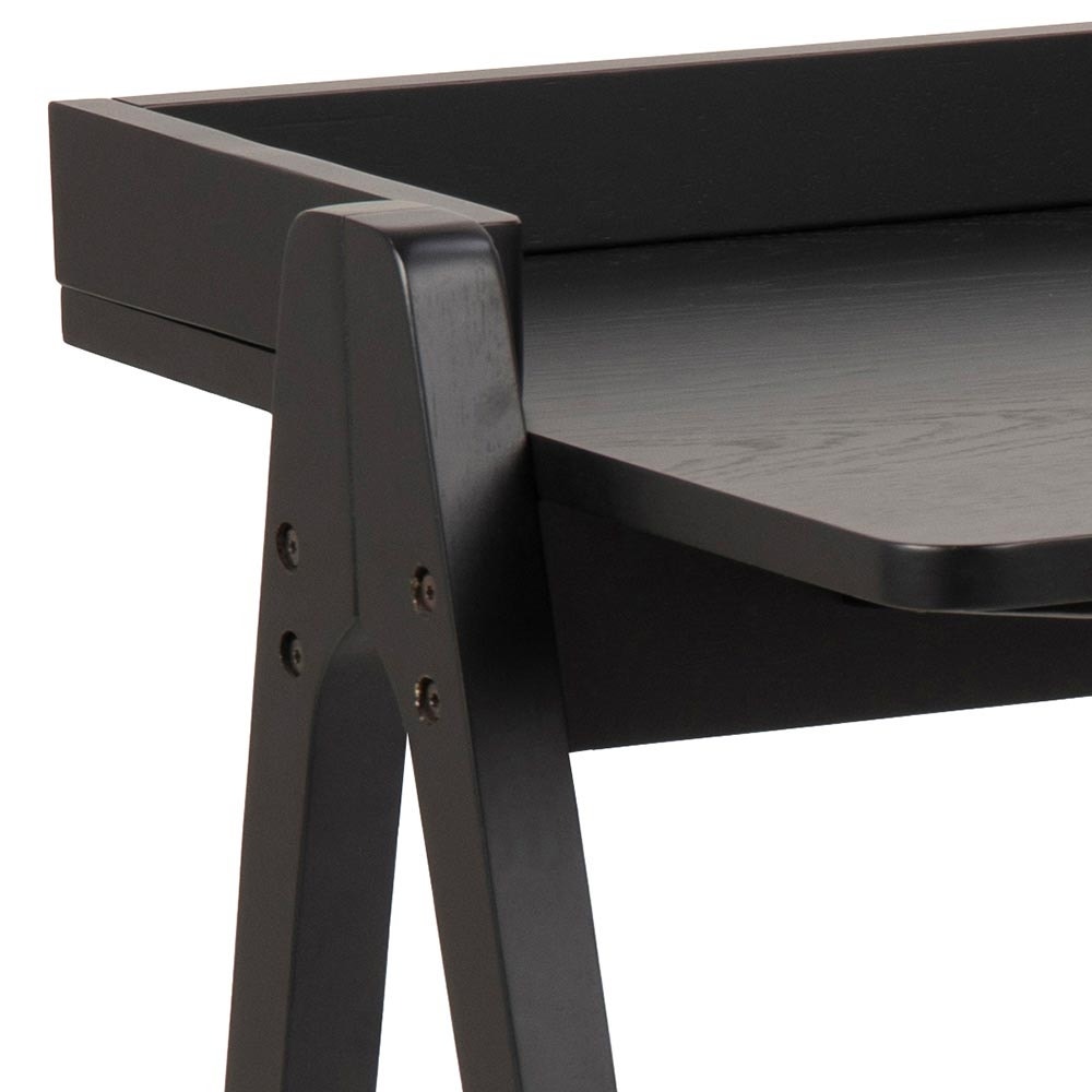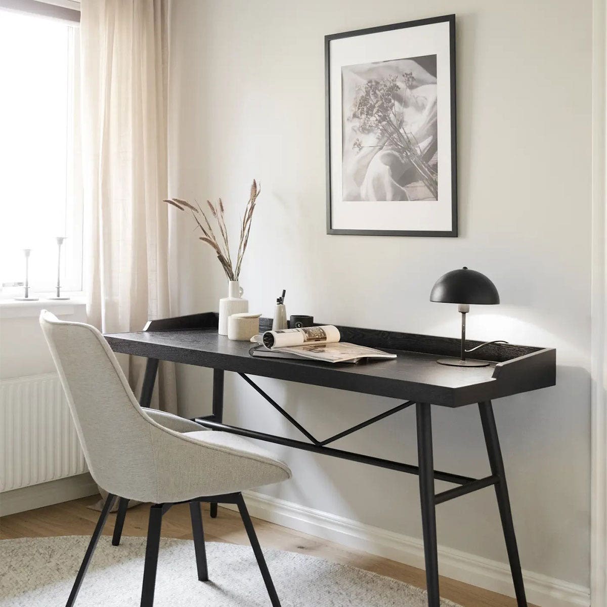 Klein maar fijn gaat zeker op voor dit eikenhouten bureau Bast van Villa Collection. Het Bast bureau van Villa Collection is volledig gemaakt van FSC™-gecertificeerd eikenhout (FSC-C166612). Dit betekent dat het hout uit verantwoord beheerde bossen afkomstig is. Het bureau is 100 cm lang, 44,5 cm breed en 73 cm hoog. Het eikenhout van dit mooie compacte bureau is afgewerkt met een zwarte verflaag, waardoor het Bast bureau een rustieke en tegelijkertijd moderne en stoere uitstraling heeft. De ronde poten en afgeronde hoeken geven een zachte touch aan de uitstraling. De poten van het bureau zijn aan de zijkanten en de achterzijde met elkaar verbonden, waardoor het stevig staat en je er zonder zorgen aan kan zitten werken. Combineer dit bureau met andere producten uit de Bast collectie van Villa Collection, zoals het Bast eikenhouten krukje, voor een moderne Scandinavische inrichting. Voordelen Het bureau is gemaakt van duurzaam