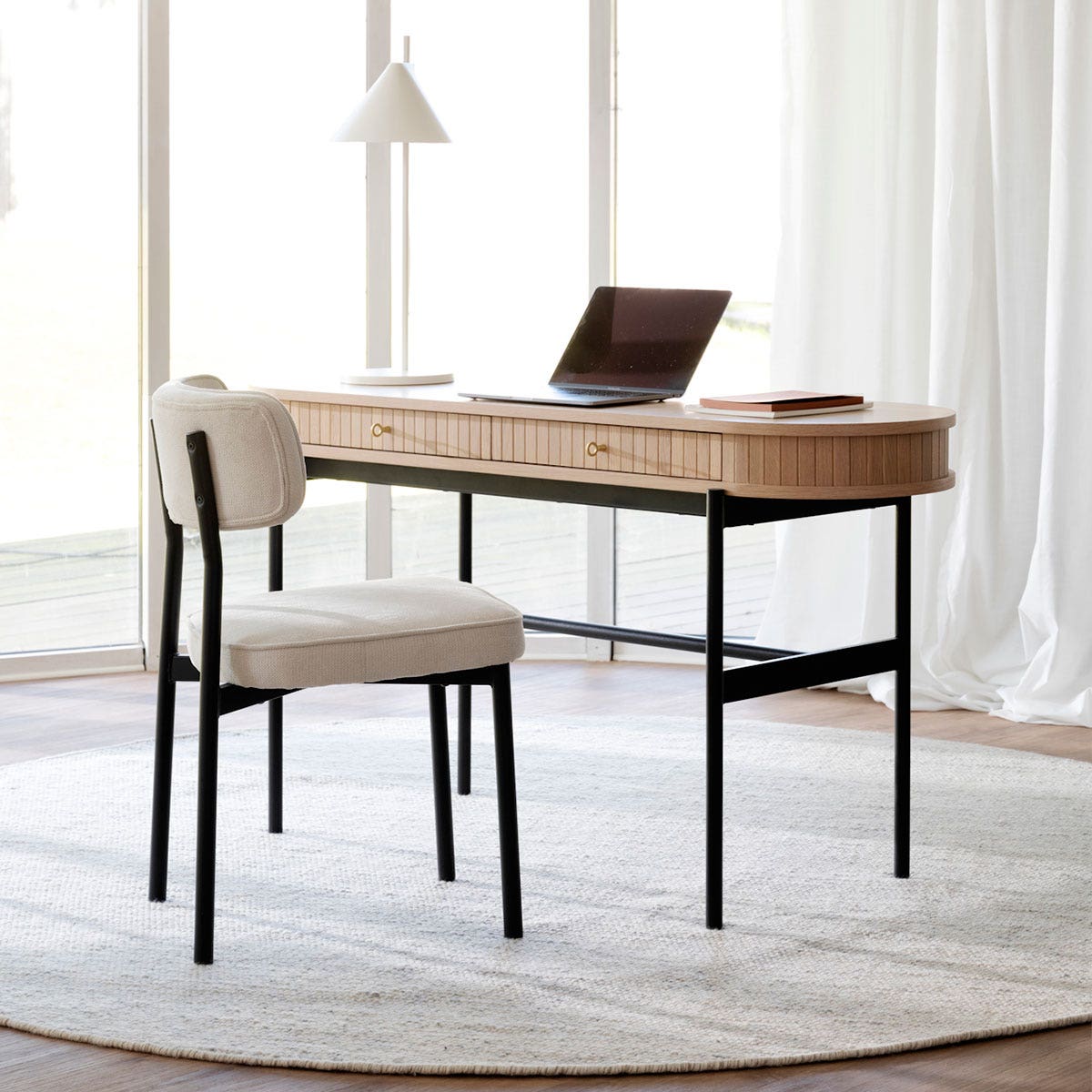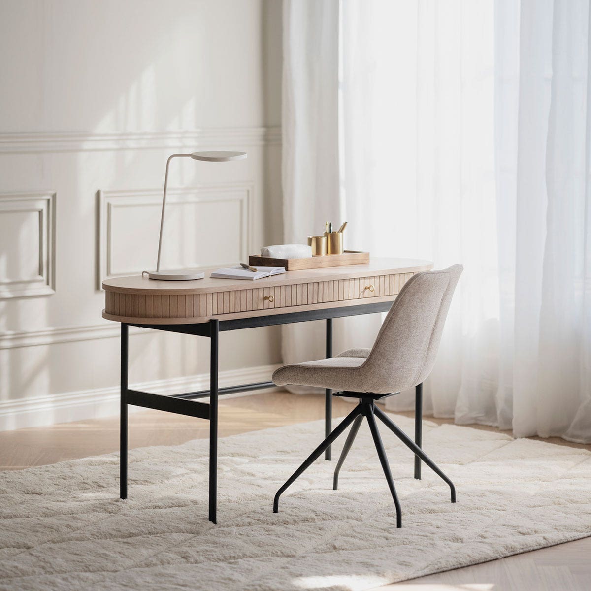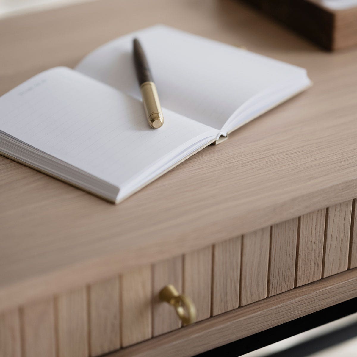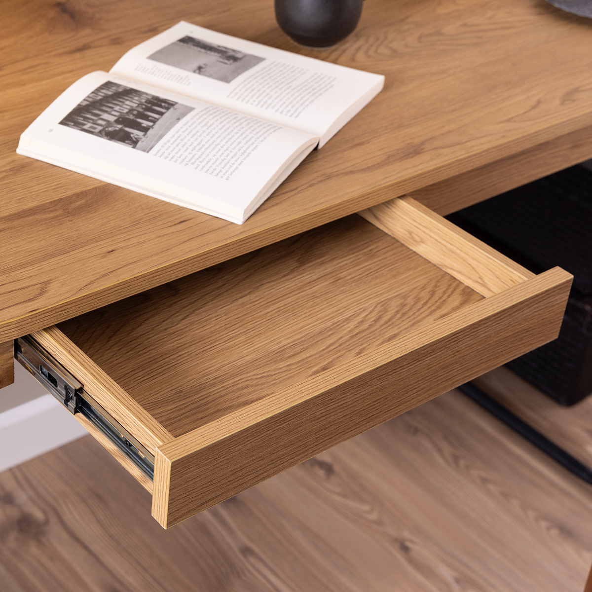 Klein maar fijn gaat zeker op voor dit eikenhouten bureau Bast van Villa Collection. Het Bast bureau van Villa Collection is volledig gemaakt van FSC™-gecertificeerd eikenhout (FSC-C166612). Dit betekent dat het hout uit verantwoord beheerde bossen afkomstig is. Het bureau is 100 cm lang, 44,5 cm breed en 73 cm hoog. Het eikenhout van dit mooie compacte bureau is afgewerkt met een zwarte verflaag, waardoor het Bast bureau een rustieke en tegelijkertijd moderne en stoere uitstraling heeft. De ronde poten en afgeronde hoeken geven een zachte touch aan de uitstraling. De poten van het bureau zijn aan de zijkanten en de achterzijde met elkaar verbonden, waardoor het stevig staat en je er zonder zorgen aan kan zitten werken. Combineer dit bureau met andere producten uit de Bast collectie van Villa Collection, zoals het Bast eikenhouten krukje, voor een moderne Scandinavische inrichting. Voordelen Het bureau is gemaakt van duurzaam