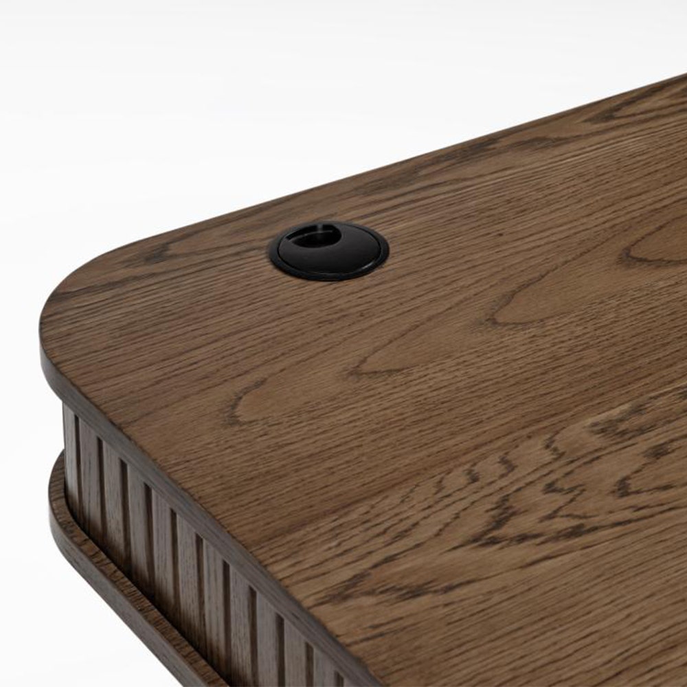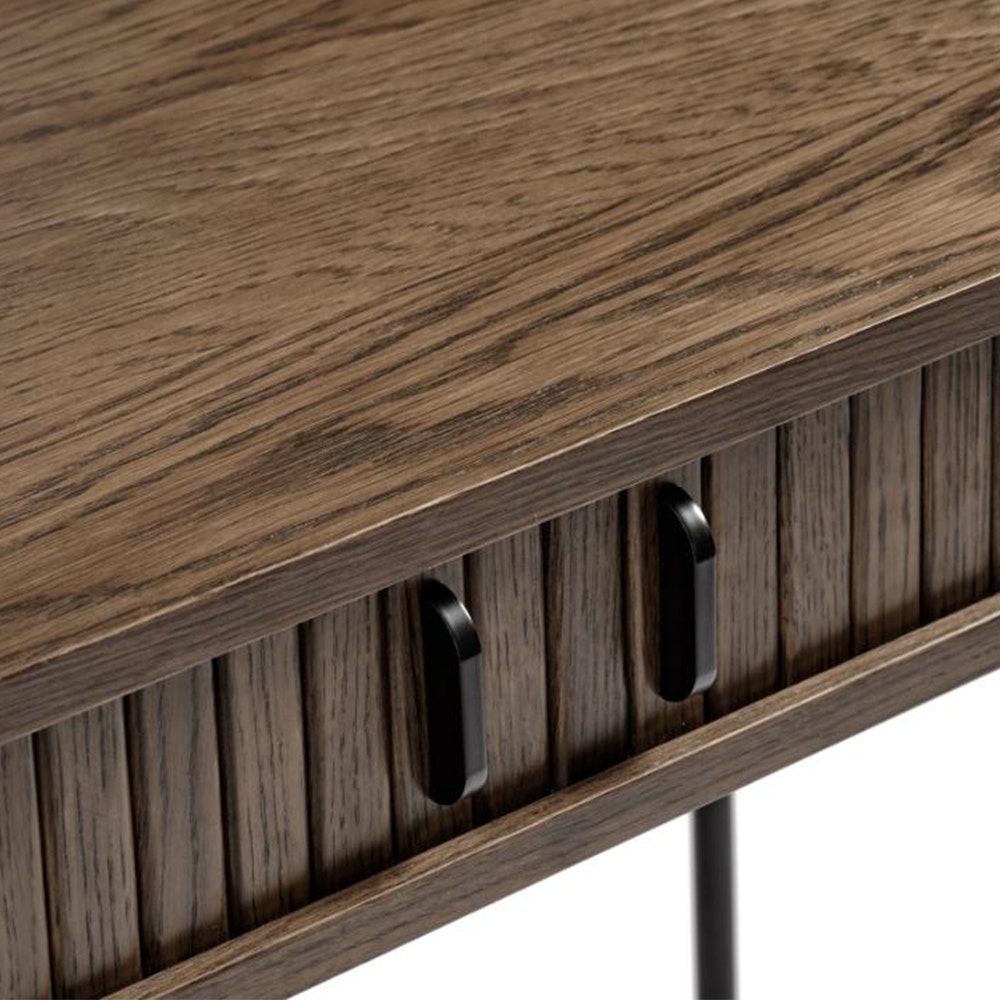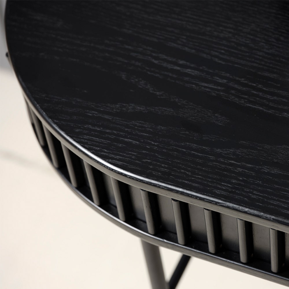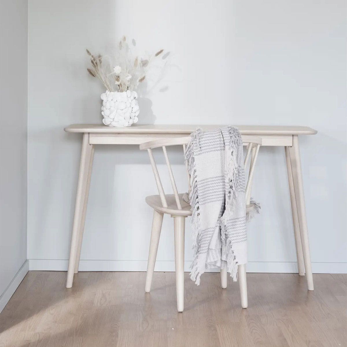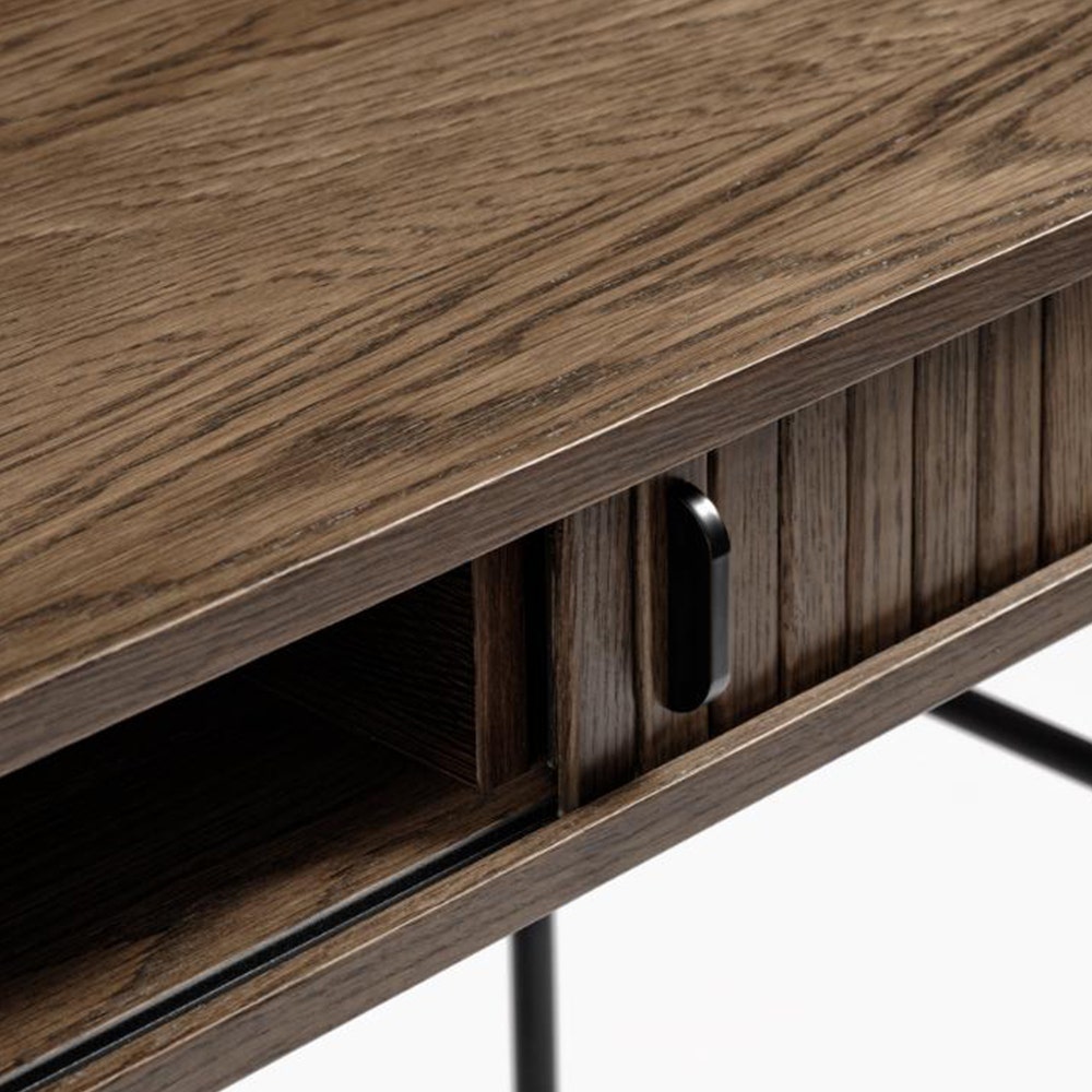 Klein maar fijn gaat zeker op voor dit eikenhouten bureau Bast van Villa Collection. Het Bast bureau van Villa Collection is volledig gemaakt van FSC™-gecertificeerd eikenhout (FSC-C166612). Dit betekent dat het hout uit verantwoord beheerde bossen afkomstig is. Het bureau is 100 cm lang, 44,5 cm breed en 73 cm hoog. Het eikenhout van dit mooie compacte bureau is afgewerkt met een zwarte verflaag, waardoor het Bast bureau een rustieke en tegelijkertijd moderne en stoere uitstraling heeft. De ronde poten en afgeronde hoeken geven een zachte touch aan de uitstraling. De poten van het bureau zijn aan de zijkanten en de achterzijde met elkaar verbonden, waardoor het stevig staat en je er zonder zorgen aan kan zitten werken. Combineer dit bureau met andere producten uit de Bast collectie van Villa Collection, zoals het Bast eikenhouten krukje, voor een moderne Scandinavische inrichting. Voordelen Het bureau is gemaakt van duurzaam