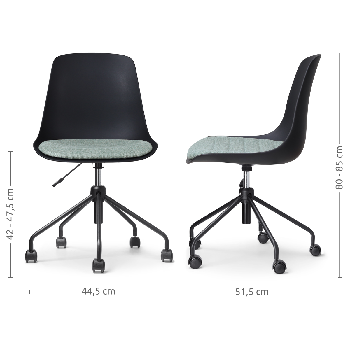 Nout Liv bureaustoel zwart met zacht groen zitkussen zwart onderstel