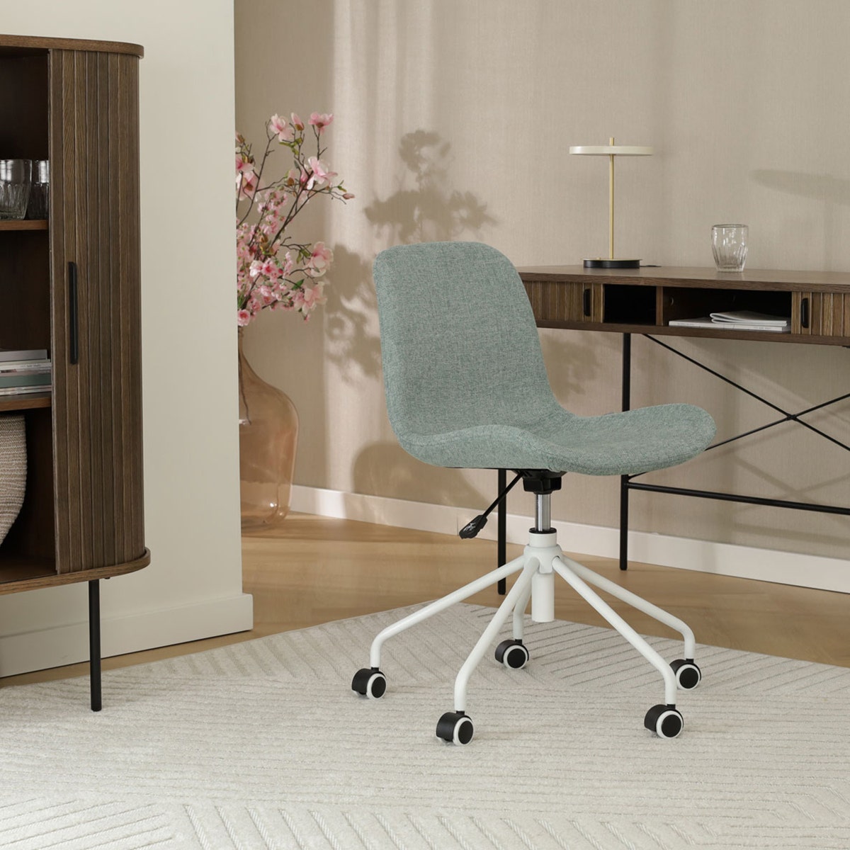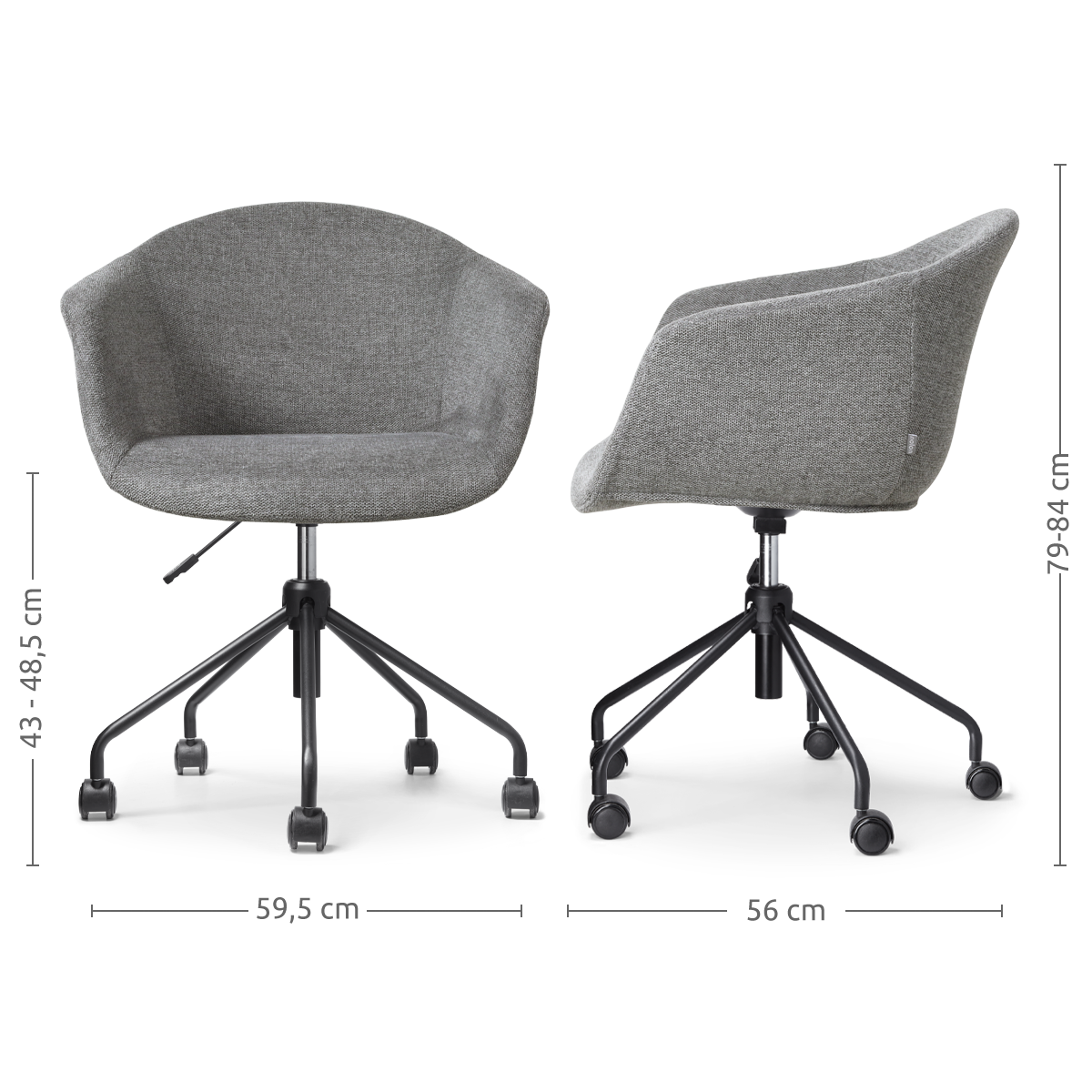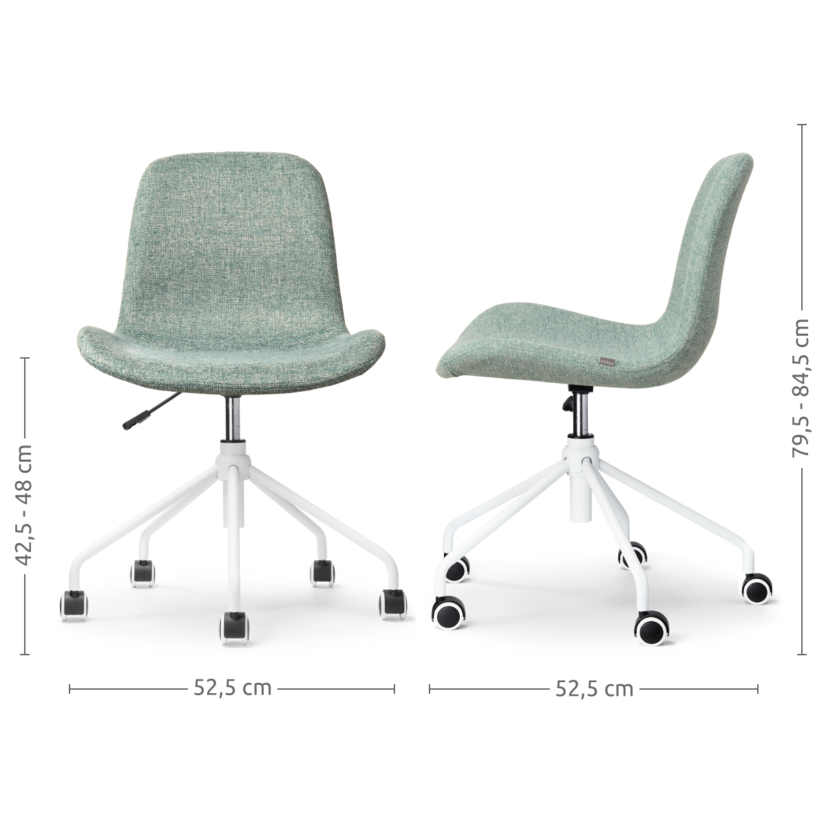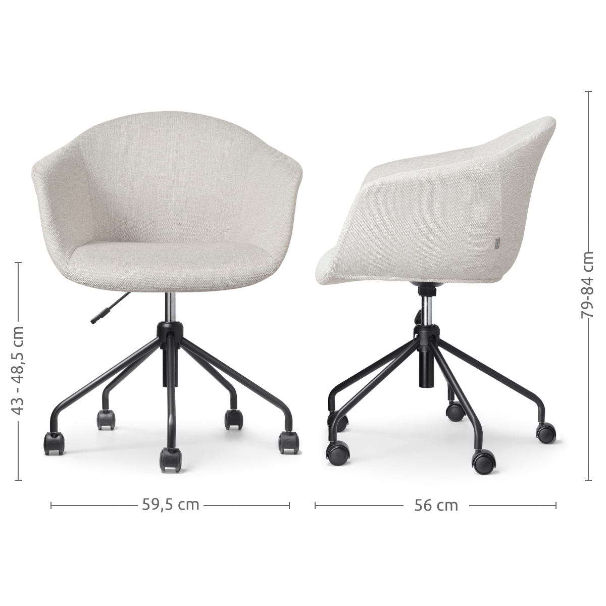 Comfortabel thuiswerken of studeren doe je met de Nout-Fé bureaustoel van Nolon. Deze bureaustoel is de ideale keuze als je op zoekt bent naar een exemplaar dat stijlvol, comfortabel en functioneel tegelijk is. Het metalen onderstel van deze bureaustoel is in hoogte verstelbaar, zodat je overal op de juiste zithoogte zit. De zitting kan 360 graden draaien op het onderstel en de stoel is voorzien van wieltjes, zodat je veel bewegingsvrijheid hebt aan je bureau. De zitting is bekleed met hoogwaardige stof voor een zachte zitervaring, en heeft subtiele rondingen en een gevleugeld zitvlak voor een hoog zitcomfort. Dankzij de actieve zithouding zit je rechtop achter je bureau. Maak een keuze uit de verschillende opties voor de bekleding, waaronder teddy en bouclé, en geef jouw werkruimte een stijlvolle upgrade. Voordelen en tips Metalen onderstel voorzien van vijf poten met zwenkwielen De wielen zijn voorzien van een zachte mantel om de