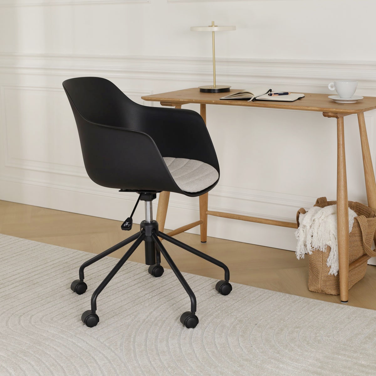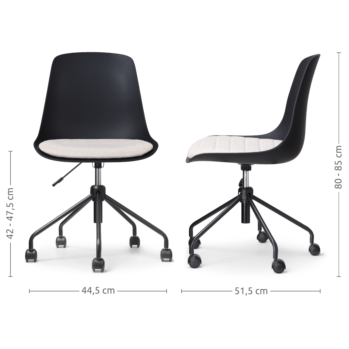 Nout Liv bureaustoel zwart met beige zitkussen zwart onderstel