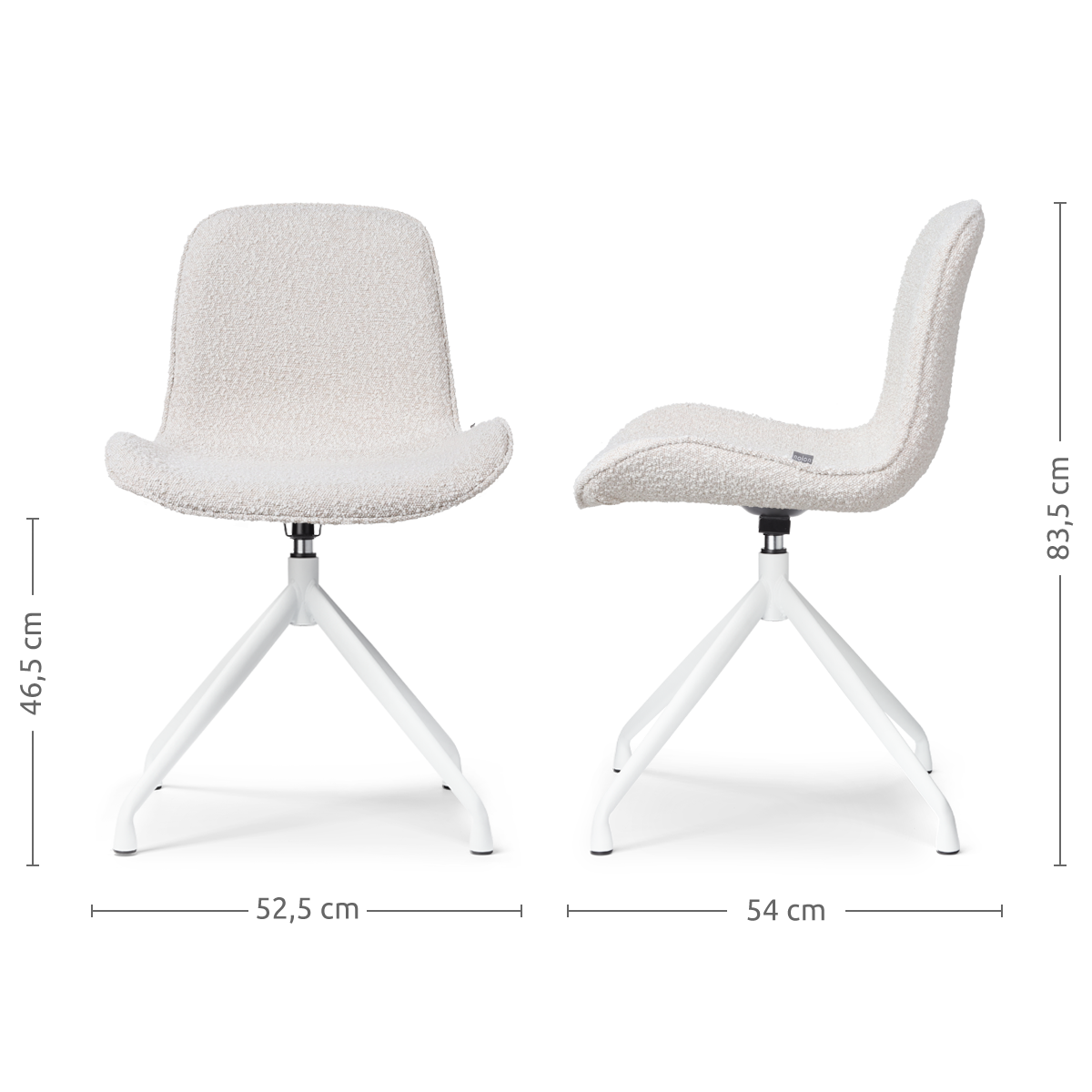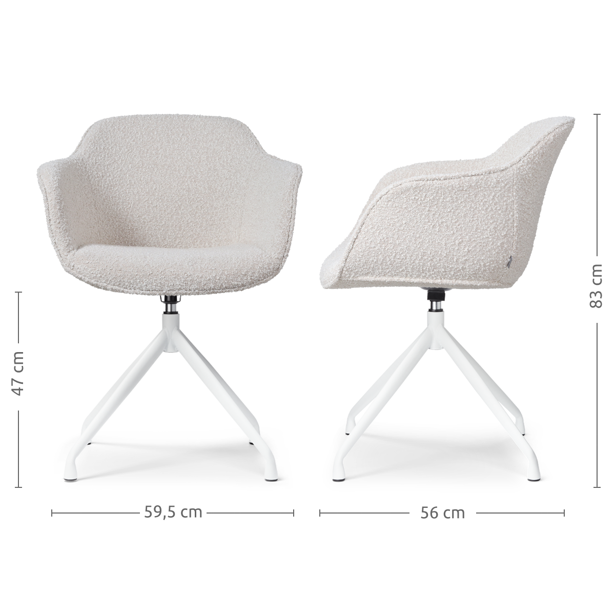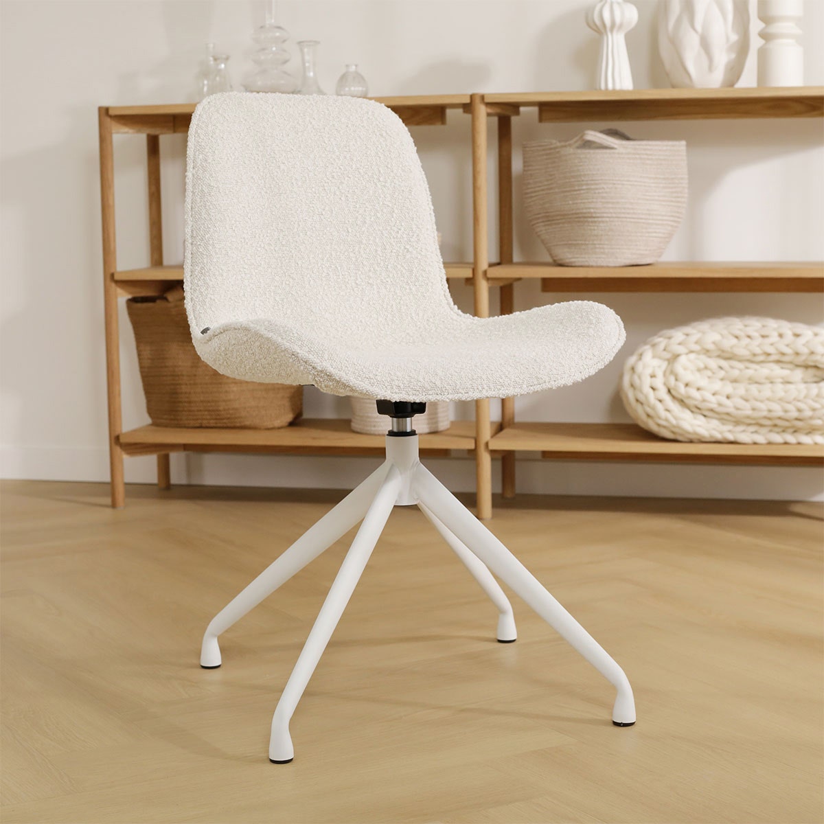 Nola Mare draaibare eetkamerstoel bouclé beige wit onderstel
