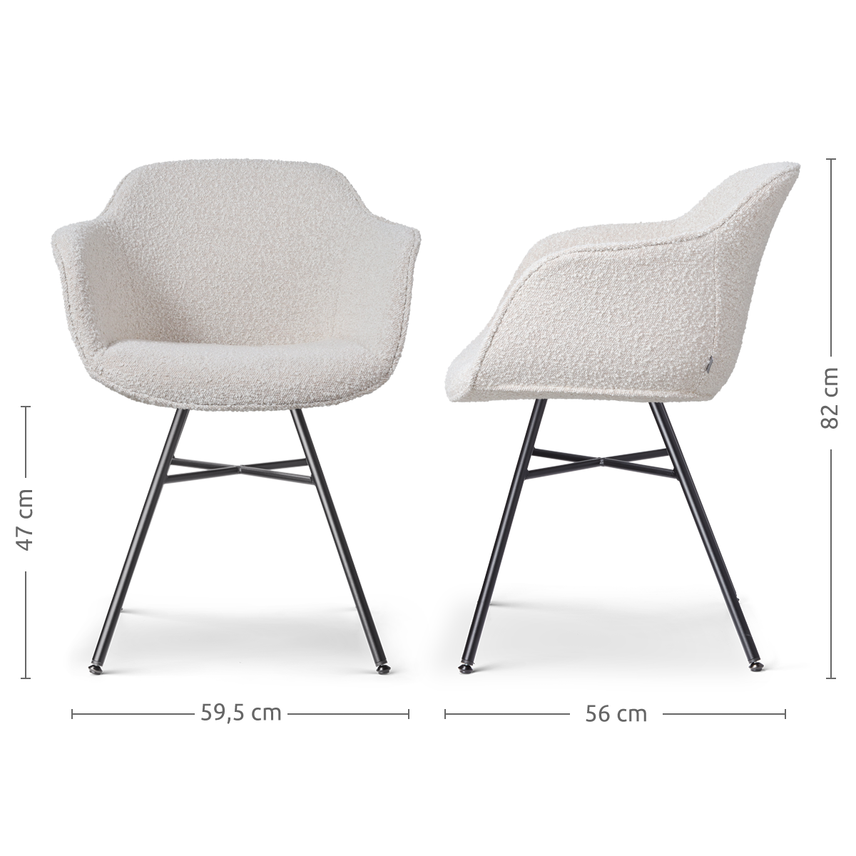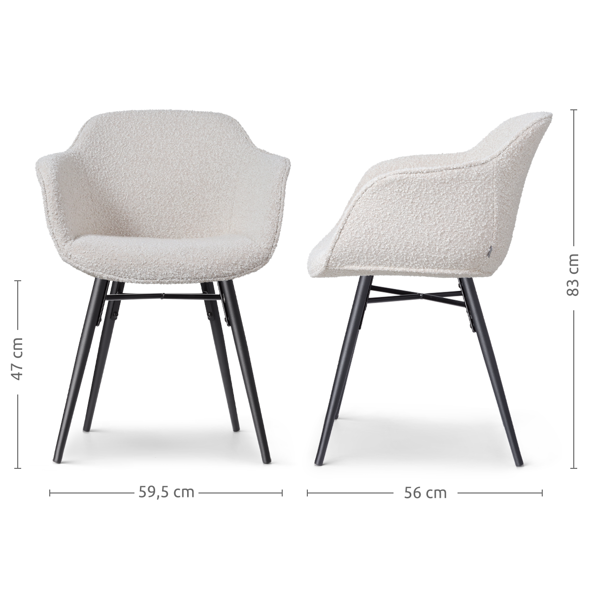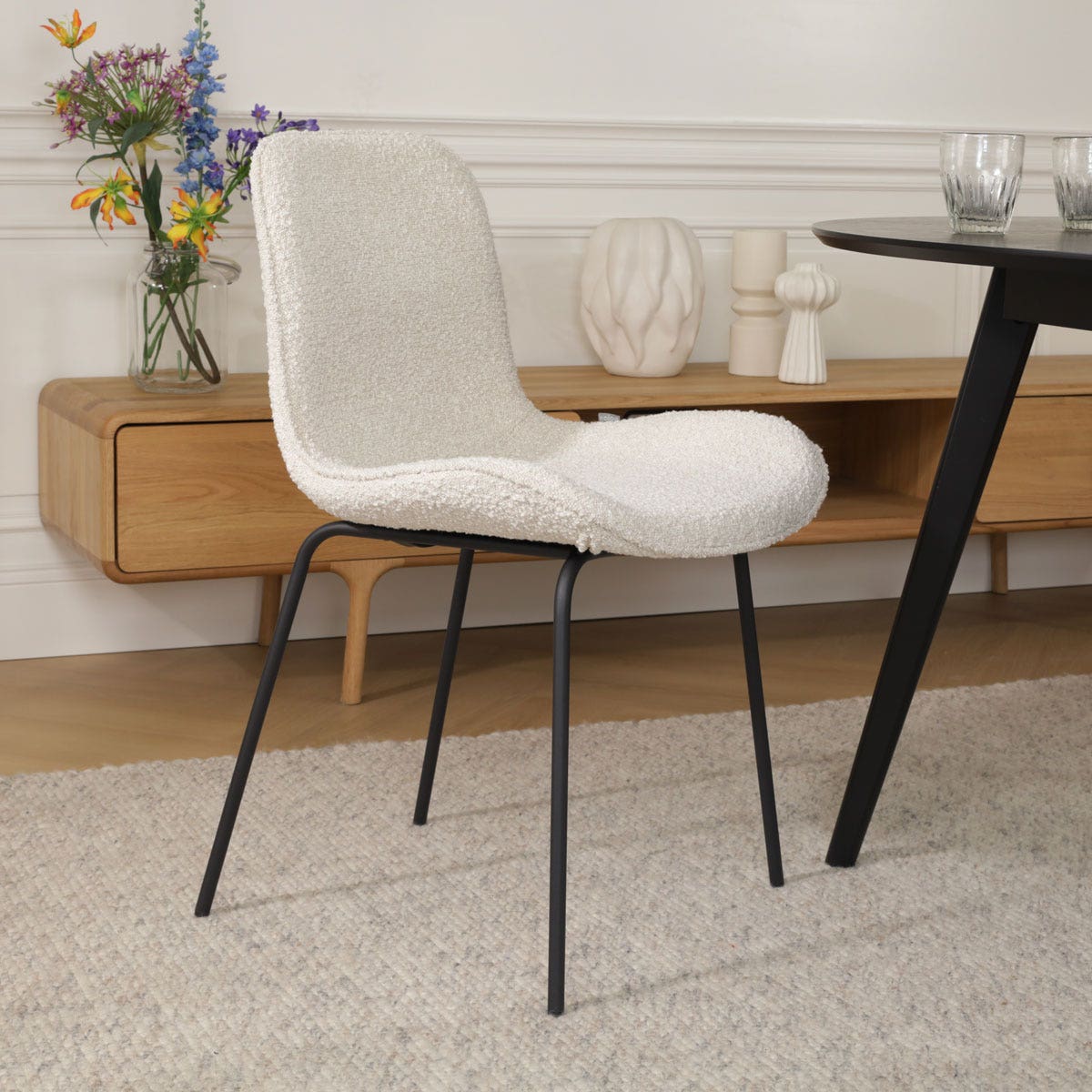 Noa Mare eetkamerstoel bouclé beige zwart onderstel