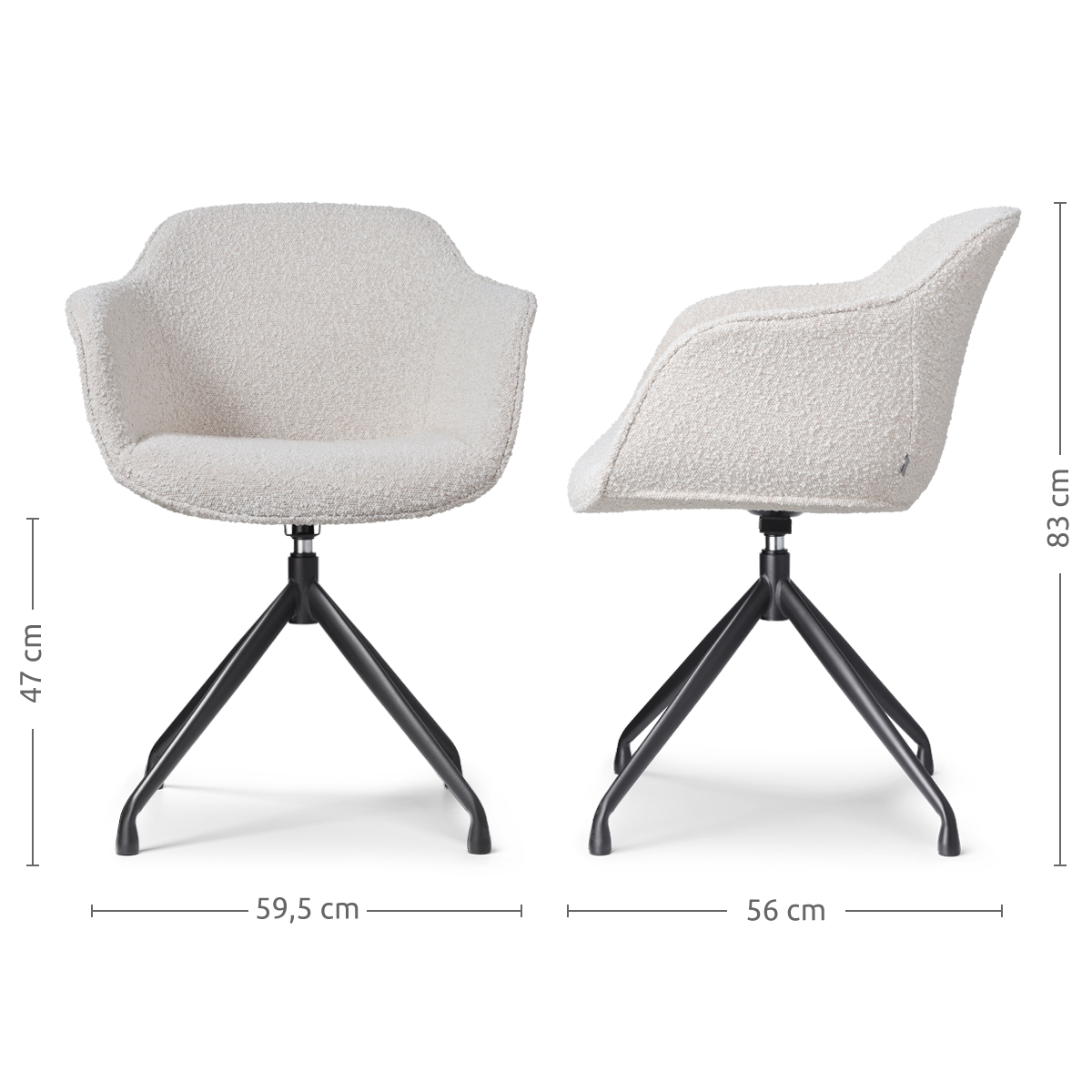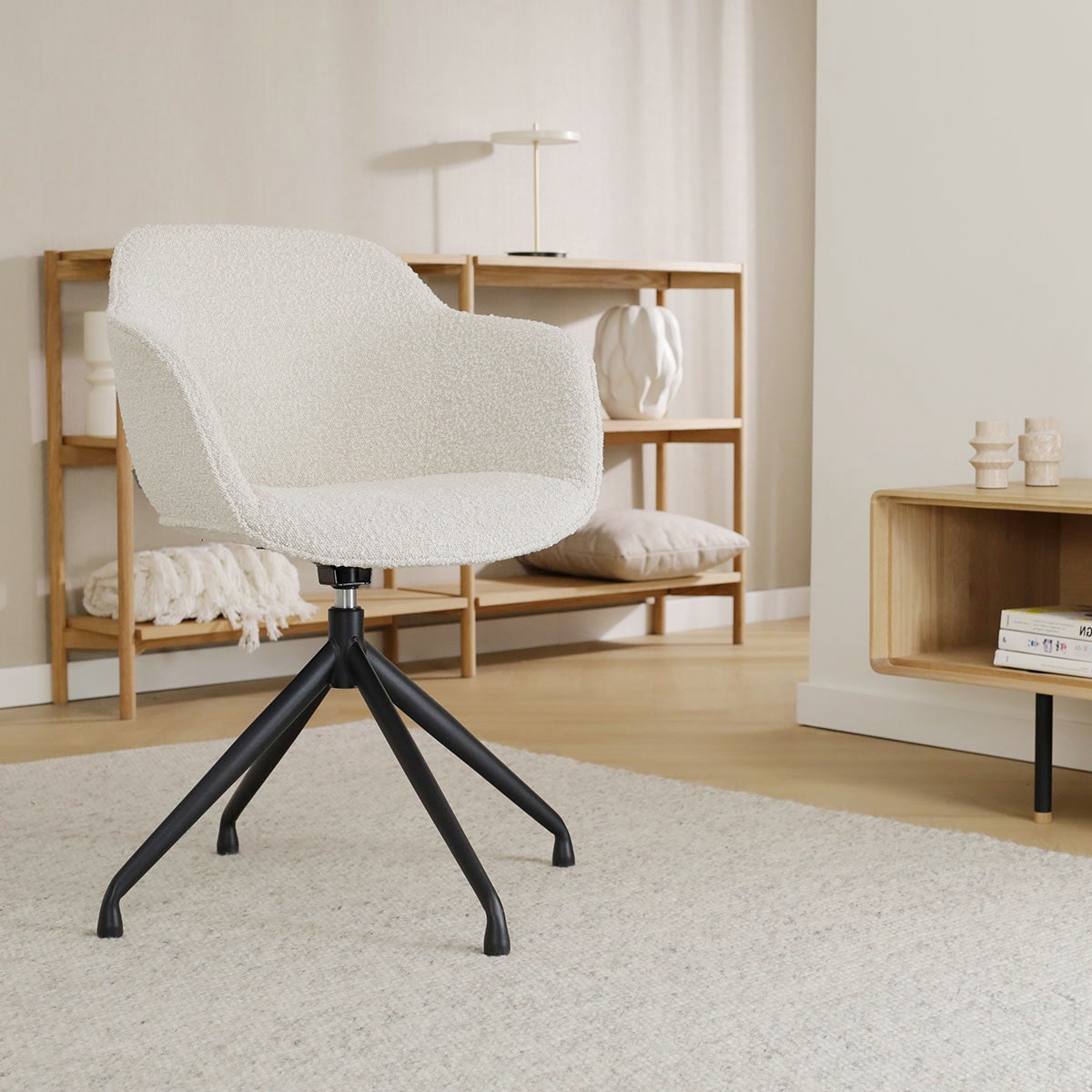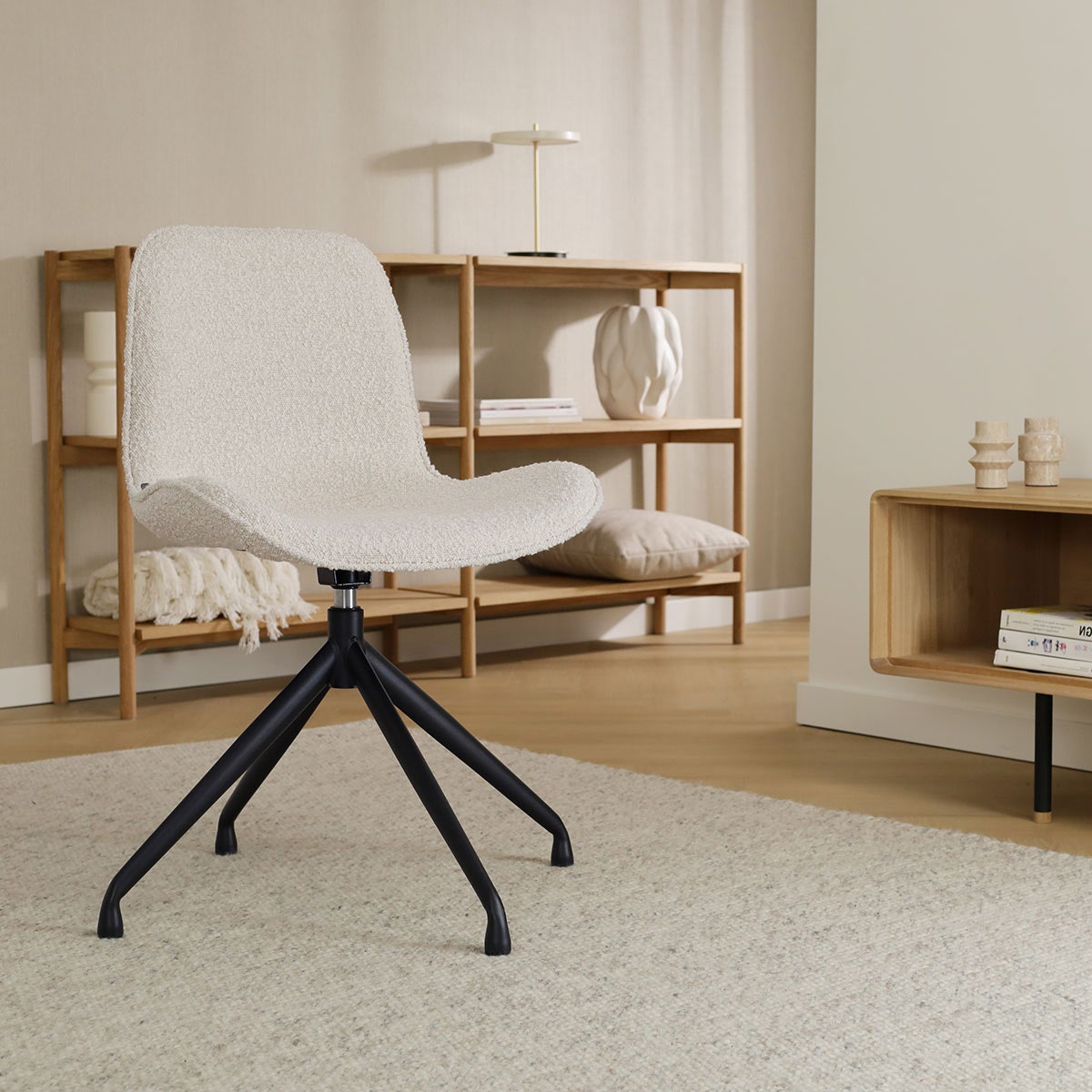 Nola Mare draaibare eetkamerstoel bouclé beige zwart onderstel
