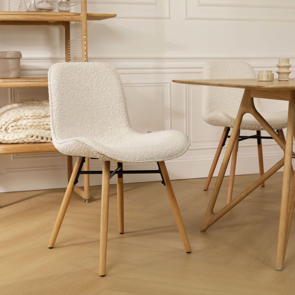 Nena Fé eetkamerstoel bouclé beige houten onderstel