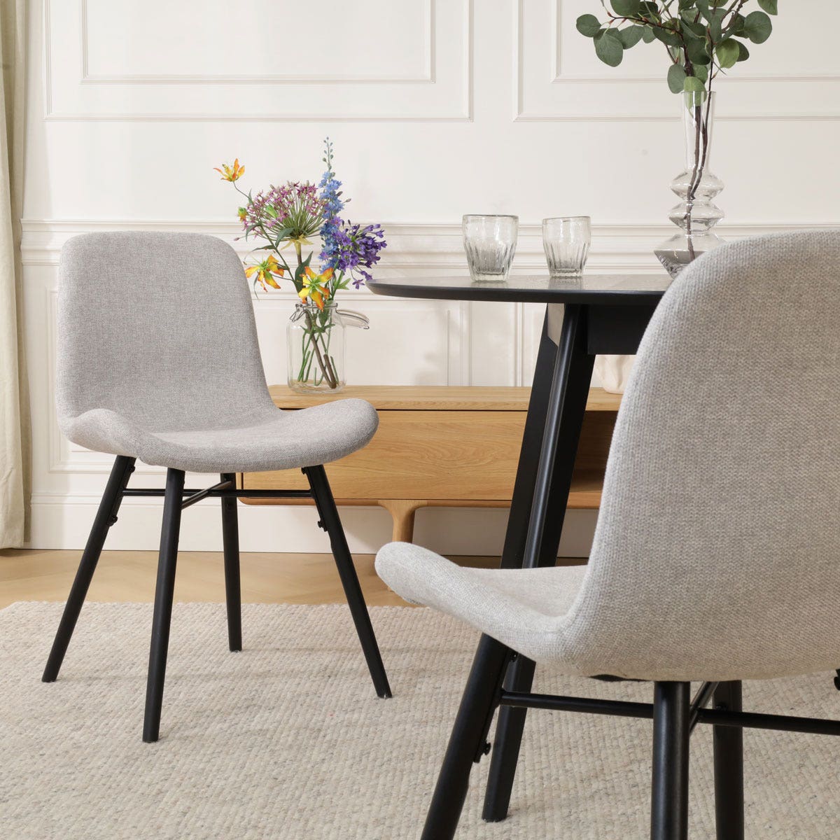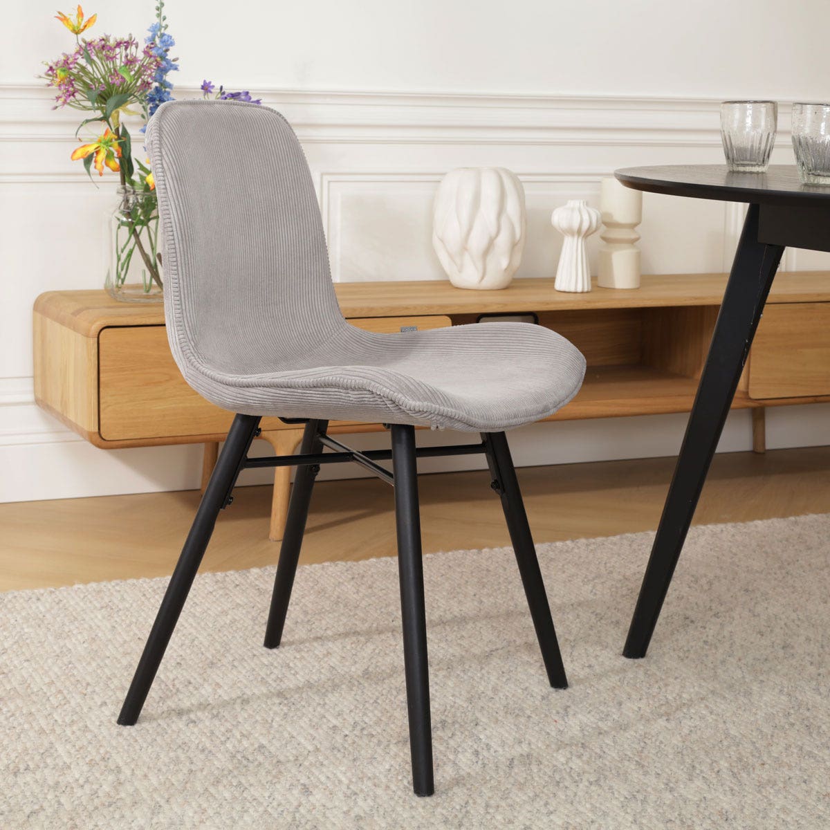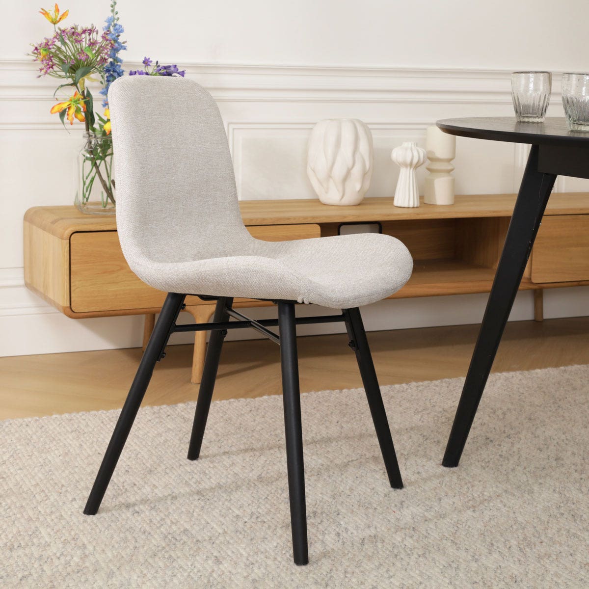 Nena Fé eetkamerstoel lichtgrijs zwart houten onderstel